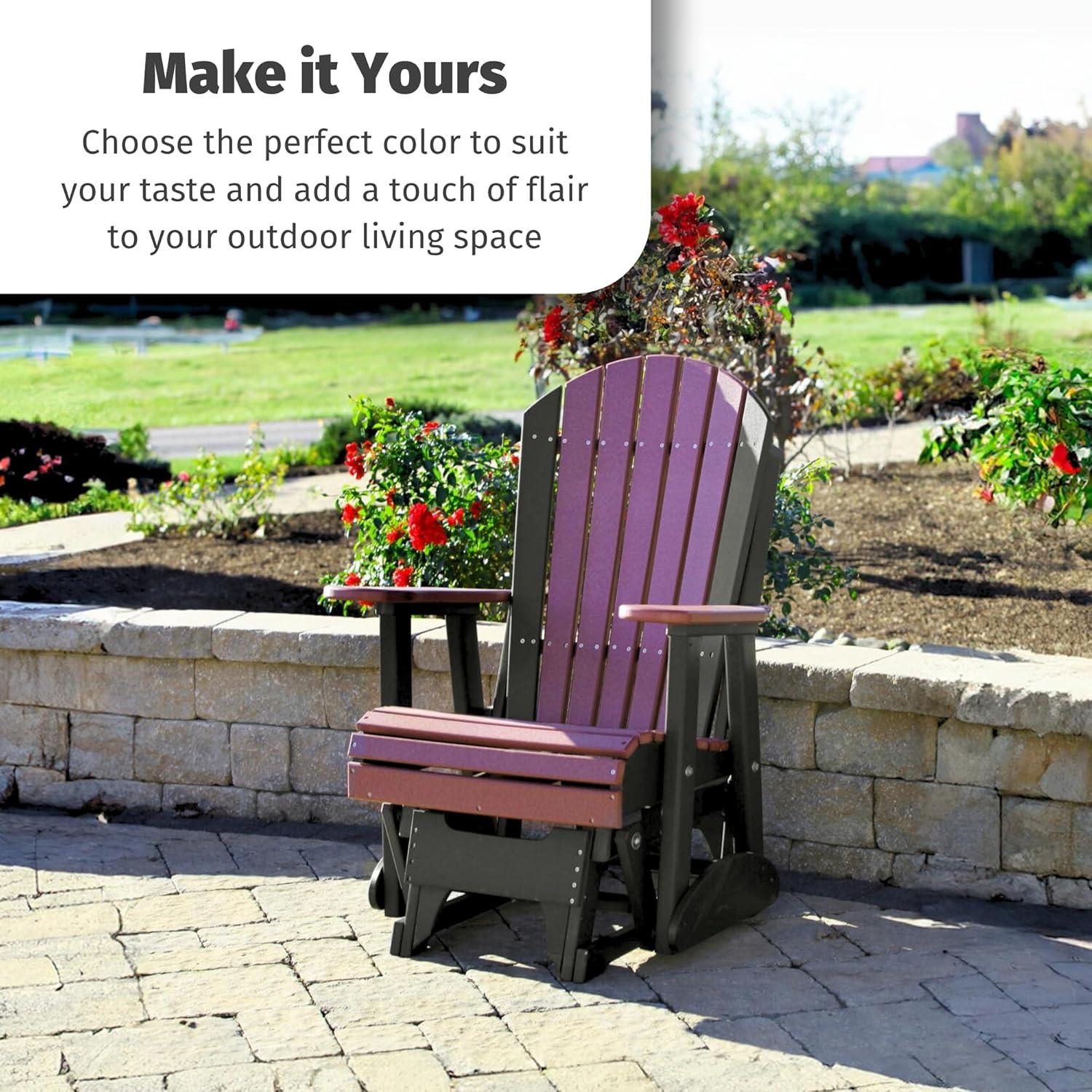 Enjoy what Mother Nature has to offer with this simple, yet elegant glider rocker. The contoured seat and rounded edges of our yard glider provides premium comfort. This gliding chair slides back and forth to melt the days stress away. — Dimensions – Overall: 30″W x 30″D x 43″H, Seat: 23″W x 18″D, Weight: 69 lbs. Assembly is required, however, thorough instructions are included for easy assembly. — LuxCraft patio gliders are made from poly lumber (HDPE) a plastic made from post-consumer recycled waste like milk jugs and laundry bottles. This plastic is melted and pressed into dense boards that can be used as a building material, such as outdoor furniture. Our poly is 90% recycled plastic by weight, so you can feel good about your gliding patio chairs. Poly is also exceptionally resistant to splintering, warping, moisture and many other environmental factors. Built with UV stabilized pigments to minimize fading through sun and weather exposure. — LuxCraft products are backed by a limited lifetime residential warranty, and a 5-year limited commercial warranty. Defective and non-conforming products or parts are replaced at no cost to you. Contact our sellers for more information.
