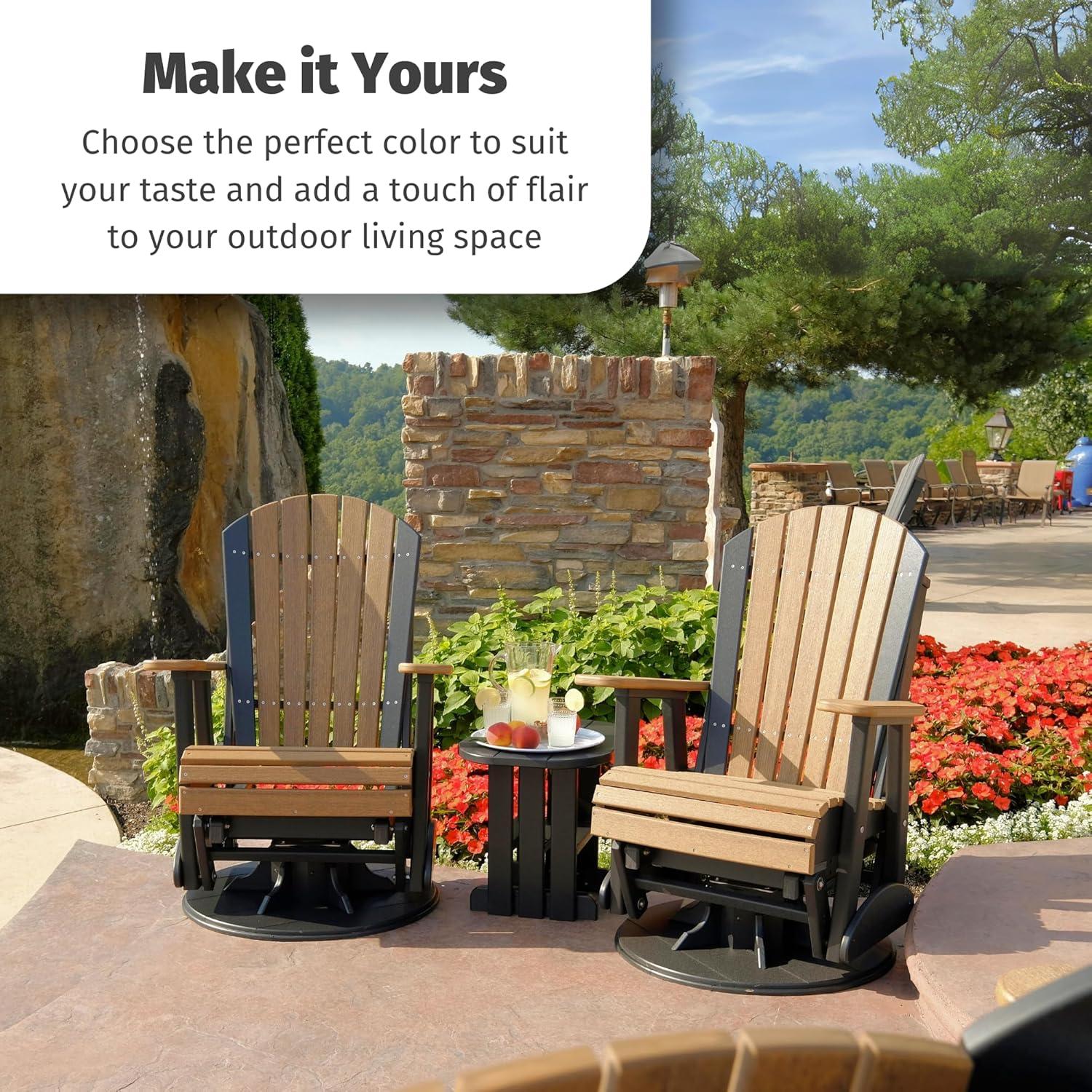 LuxCraft 2′ Adirondack Outdoor Swivel Glider Chair, Patio Gliding Rocker, Swiveling Glider Rocking Chair for Outside (Antique Mahogany & Black)(Aruba Blue & White)