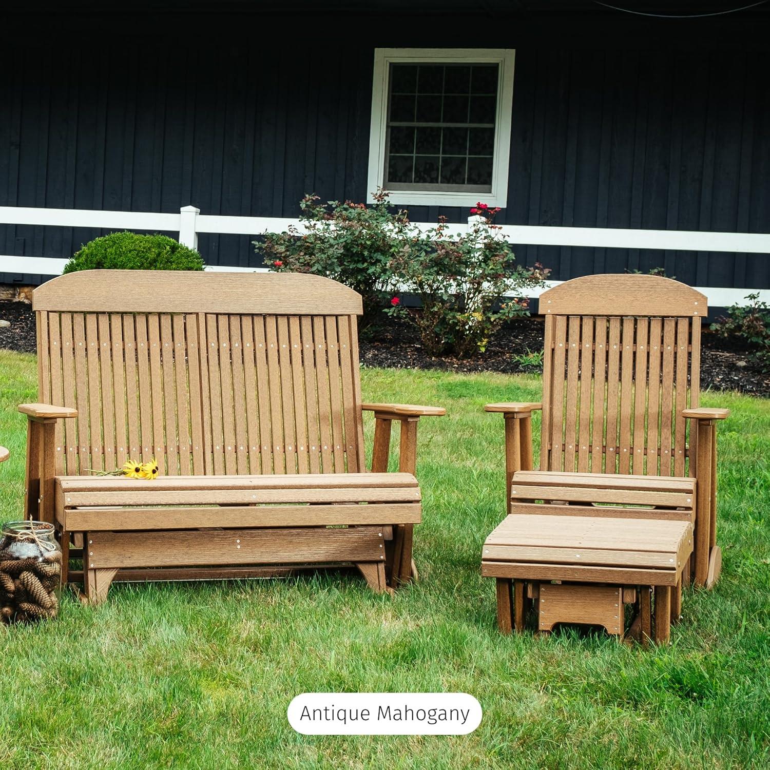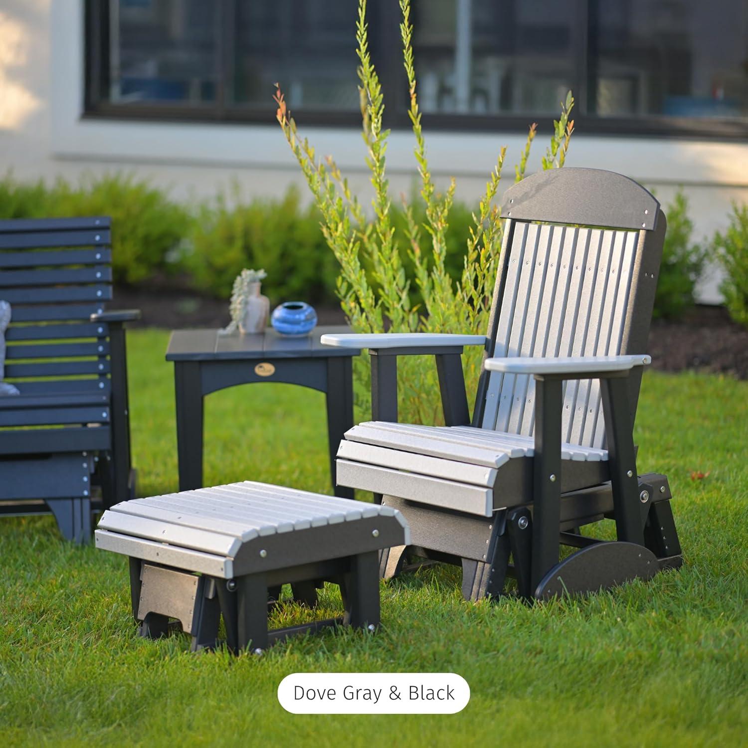 Enjoy the perfect blend of traditional craftsmanship and modern, eco-conscious design with the LuxCraft 2 Foot Classic Porch Glider. Whether you’re sipping morning coffee on the patio or watching the sunset in the backyard, this outdoor glider rocker offers gentle rocking comfort and durable quality that will last for years to come—so there’s no more replacing outdoor furniture every year. Handcrafted by skilled Amish artisans in the USA, this glider chair outdoor is made from HDPE poly lumber, a sustainable material made from recycled plastics that mimics painted wood without the upkeep. Say goodbye to splinters, cracks, and painting. Built for the outdoors, this rocker glider chair stands up to the elements with UV-stabilized color technology that keeps these outdoor glider chairs looking vibrant season after season, even in direct sunlight. Stainless steel fasteners provide extra strength and corrosion resistance, making it a dependable choice for any climate, from coastal humidity to mountain snow. Please note that in coastal climates, more frequent upkeep is recommended. Designed with comfort in mind, this porch glider chair features a curved backrest and contoured seat to support hours of relaxed sitting. The gliding motion is smooth and quiet, perfect for reading, resting, or unwinding outdoors. For even more comfort, pair it with the LuxCraft Glider Footrest or Slideout Cup Holder (sold separately). Assembly is required, and the glider lawn chair will arrive in two separate boxes. A 5/32 Hex Key is included for your convenience. You’ll also need a #2 Square Drive Bit and a 9/16″ Wrench (not included). Instructions are clear and easy-to-follow, so you can enjoy your new polywood glider chair in no time. This outdoor gliding chair is offered in a variety of colors to match your patio furniture and décor. The LuxCraft 2' Classic Glider Chair is a great choice for eco-conscious homeowners who want comfort, style, and quality that lasts for decades.