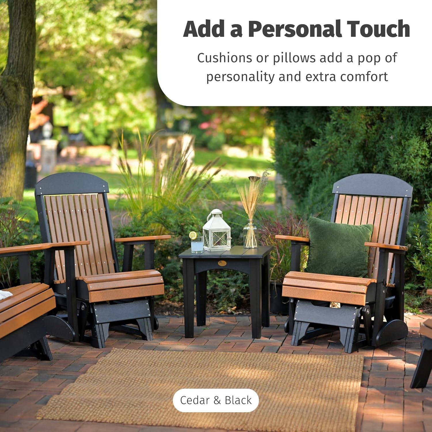 Customize Your Comfort – Pair your glider outdoor chair with other LuxCraft accessories like the Slideout Cup Holder or Glider Footrest (sold separately) to create a personalized outdoor seating experience for lasting comfort.