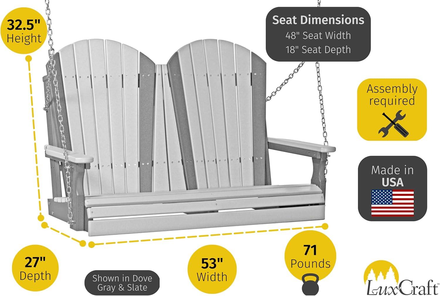 LuxCraft 4′ Adirondack Swing – Available in 22 Colors(Yellow and Black)