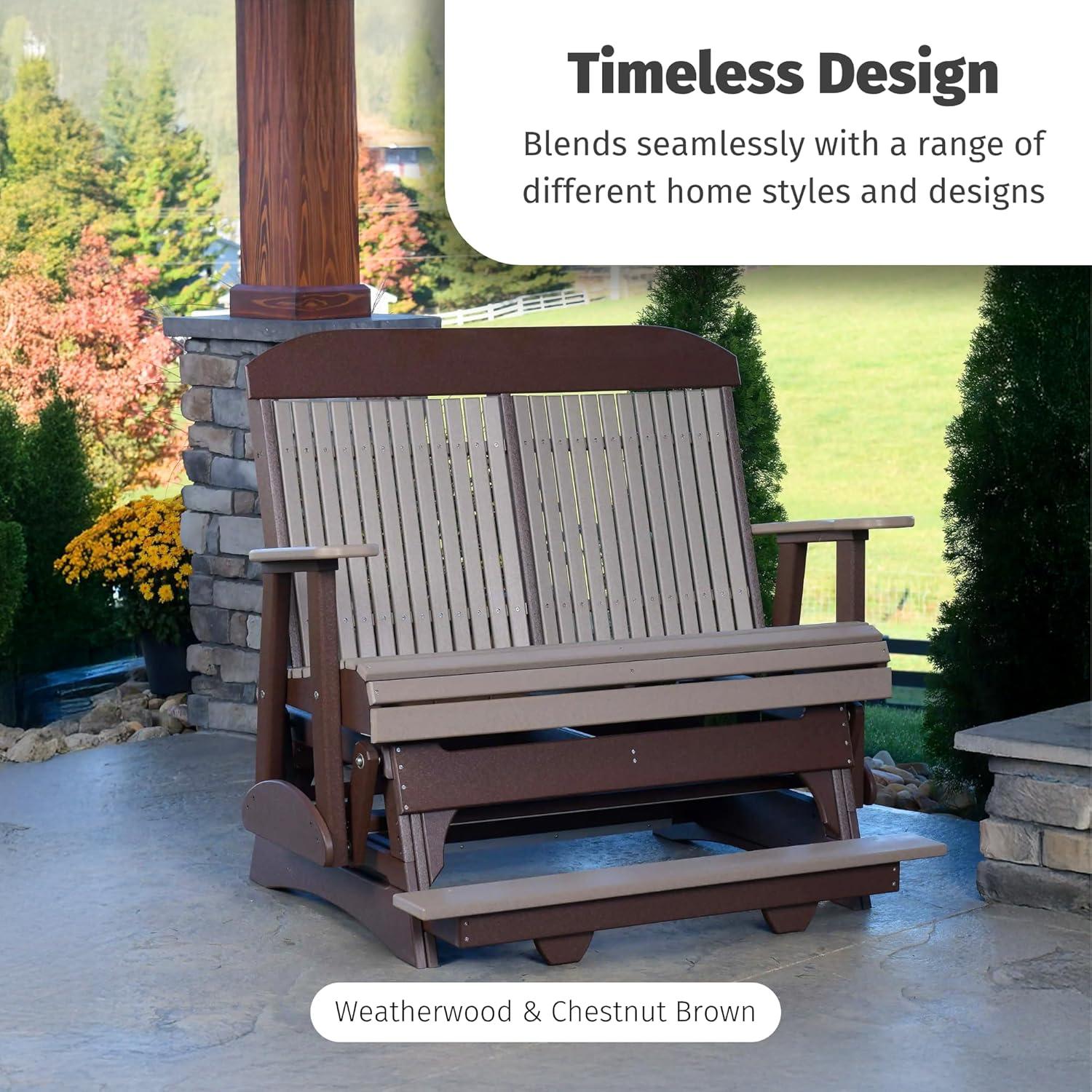 LuxCraft 4' Classic Poly Slat Back Balcony Glider with Built-in Footrest, Seats Up to 2, Loveseat for Two - Amish Made in USA (Weatherwood)(Weatherwood)