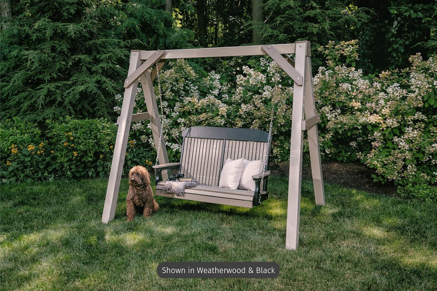 LuxCraft 4′ Poly High Back Classic Porch Swing, Made with Recycled Plastics – Made in USA (Dove Gray & Black)(Cedar & Black)