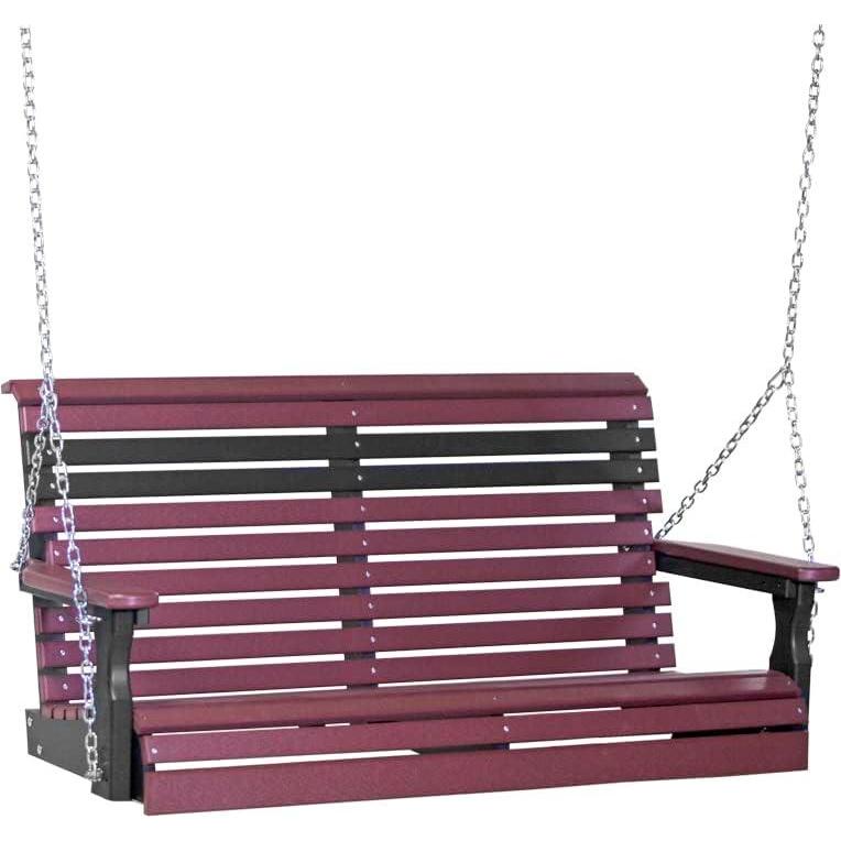 LuxCraft 4' Poly Rollback Plain Porch Swing, Made with Recycled Plastics - Made in USA (Chestnut Brown)(Cherrywood & Black)