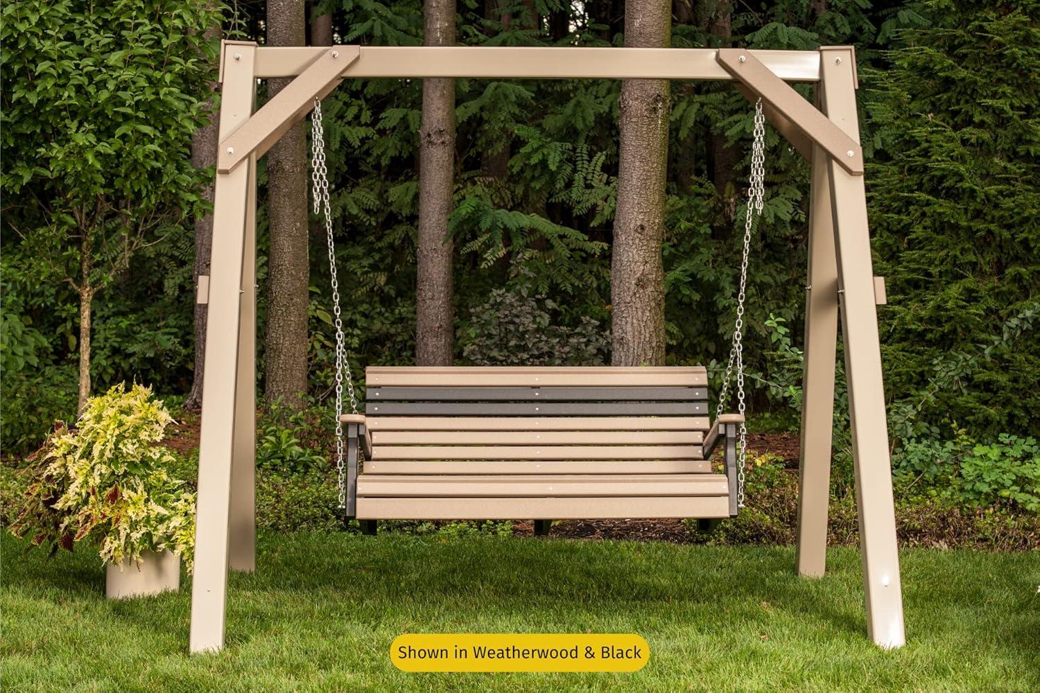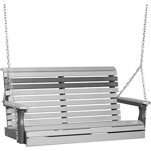 LuxCraft 4′ Poly Rollback Plain Porch Swing, Made with Recycled Plastics – Made in USA (Chestnut Brown)(Dove Gray & Black)