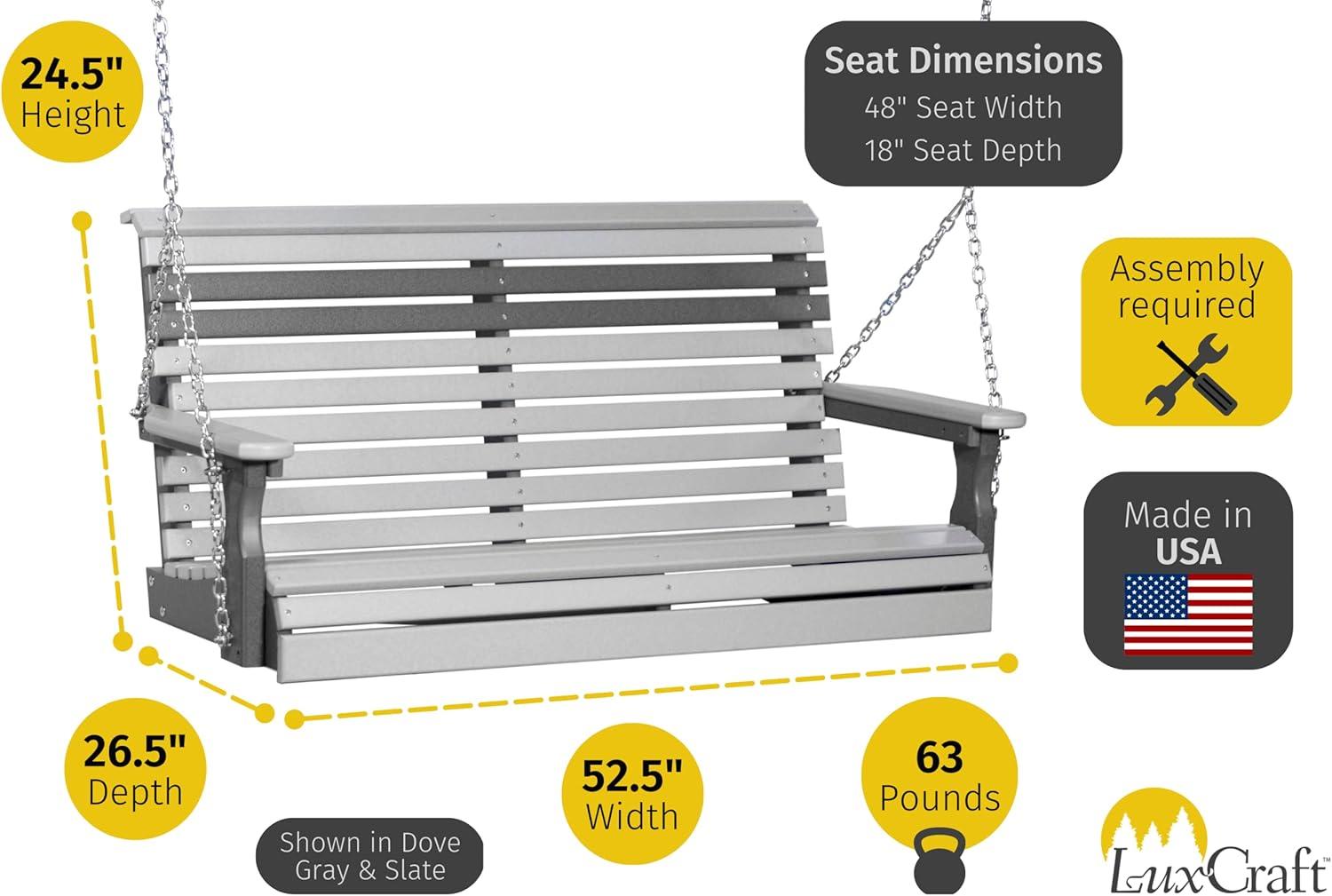 LuxCraft 4′ Poly Rollback Plain Porch Swing, Made with Recycled Plastics – Made in USA (Chestnut Brown)(Dove Gray & Slate)