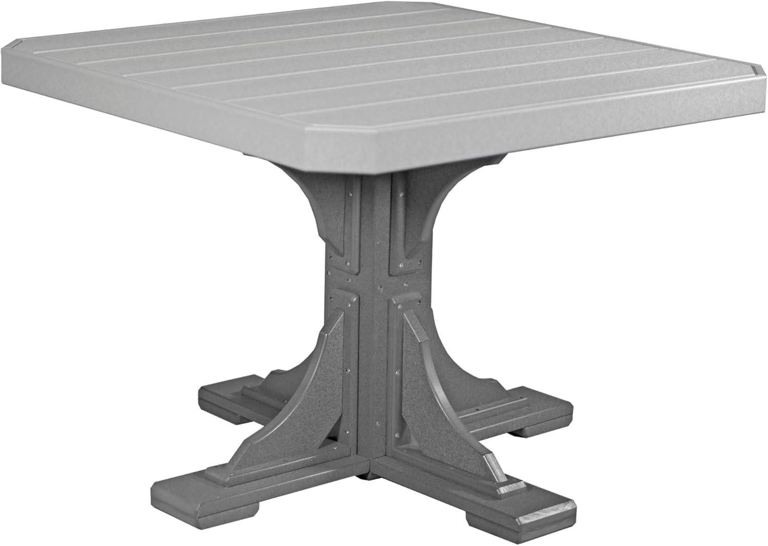 The LuxCraft 41″ Poly Square Dining Table is where lasting craftsmanship meets timeless style. Expertly handcrafted in the USA by skilled Amish artisans, this HDPE dining table is part of the renowned LuxCraft furniture collection that offers a stunning combination of strength, style, and sustainability. Whether you're setting the stage for a peaceful dinner for two or curating a complete patio dining table for 4, these square patio tables are a standout addition to any outdoor space. LuxCraft outdoor dining tables are available in a palette of stunning bold or neutral colors, allowing you to select the shade that best complements your existing patio set or hdpe furniture. The patio dining tables sculpted single pedestal base adds a touch of elegance, while the squared top provides ample space for dining and entertaining outdoors. One of the standout features of this hdpe outdoor table is its customizable height options. Choose from standard dining height (30 1/4″), counter height (36 1/4″), or bar height (42″) to suit your specific dining needs. This flexibility ensures that the outdoor adirondack table fits seamlessly into your outdoor patio dining setup, whether you're furnishing a patio bistro set or an expansive patio dining table for outside gatherings. Made from high-density polyethylene (HDPE), this outdoor dining table with umbrella hole is celebrated for its weather resistance and low maintenance. With just a simple wash with soap and water, your poly patio table will remain pristine through every season, eliminating the need for frequent upkeep. This outdoor square table is designed with practicality in mind, featuring an umbrella hole for easy integration with a patio umbrella table setup, perfect for sunny afternoons. Assembling your new poly furniture might require a little effort, but the process is straightforward and well worth the result: a stunning 42 square table of your choice that enhances your outdoor dining experiences