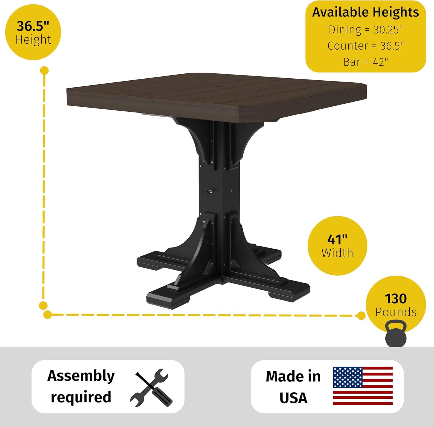 LuxCraft 41-Inch Poly Square Outdoor Dining Table, Outdoor Patio Table with Umbrella Hole, Plug & Stabilizer, Dining, Counter or Bar Height Patio Tables (Cedar & Black, Counter Height)(Dove Gray & Slate)