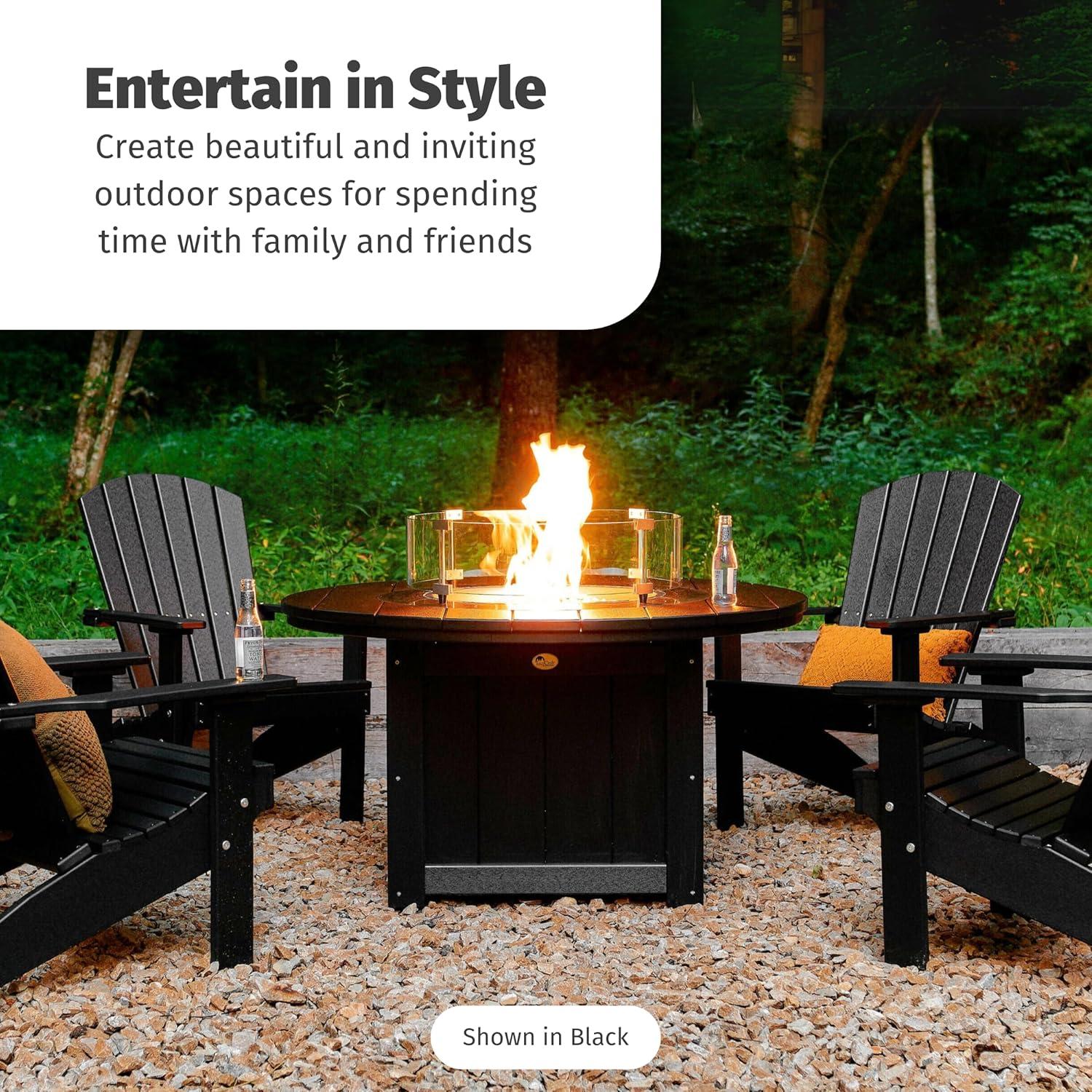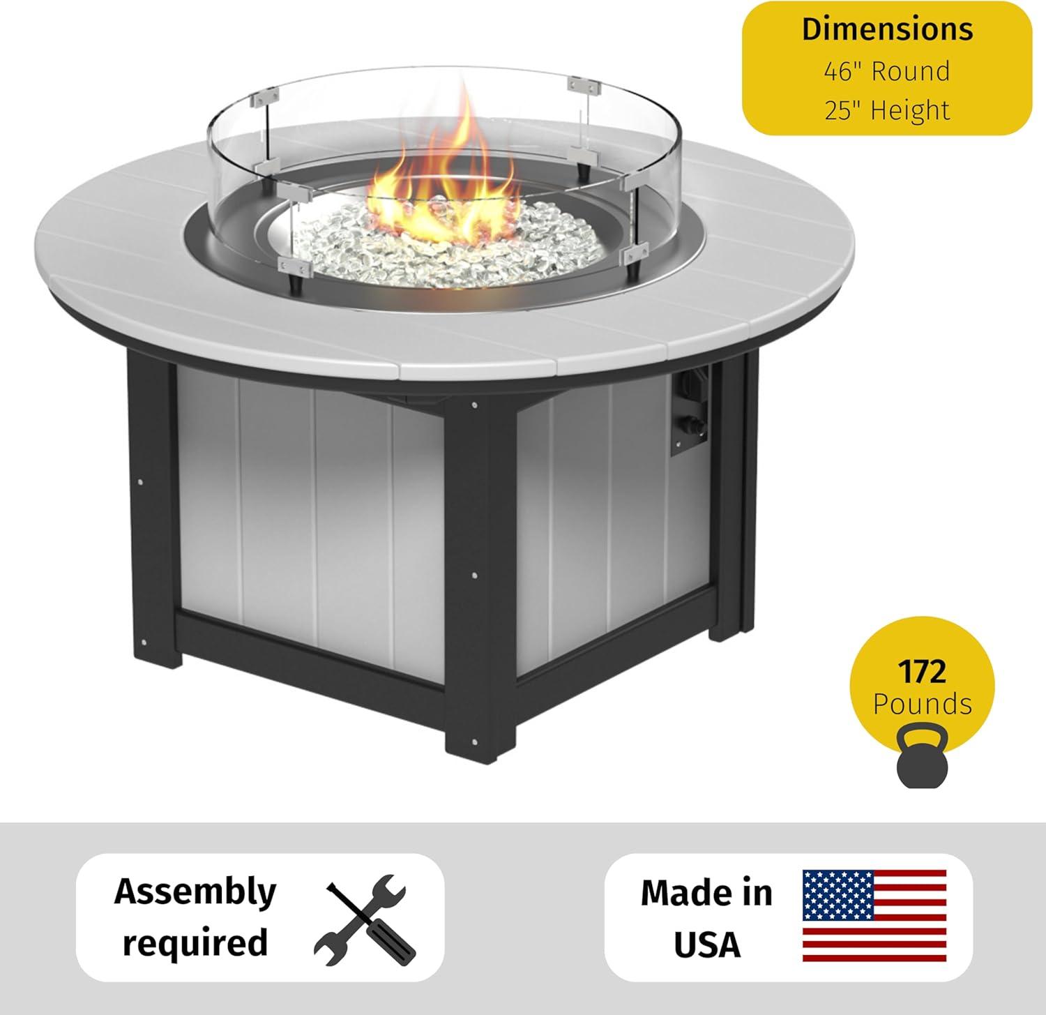 LuxCraft 46" Lumin Round Gas Propane Fire Pit Table for Outdoor Patio with Tempered Glass Wind Guard and Stainless Steel Burner Cover - Amish Made in USA (Coastal Gray & Black)(Coastal Gray & Black)