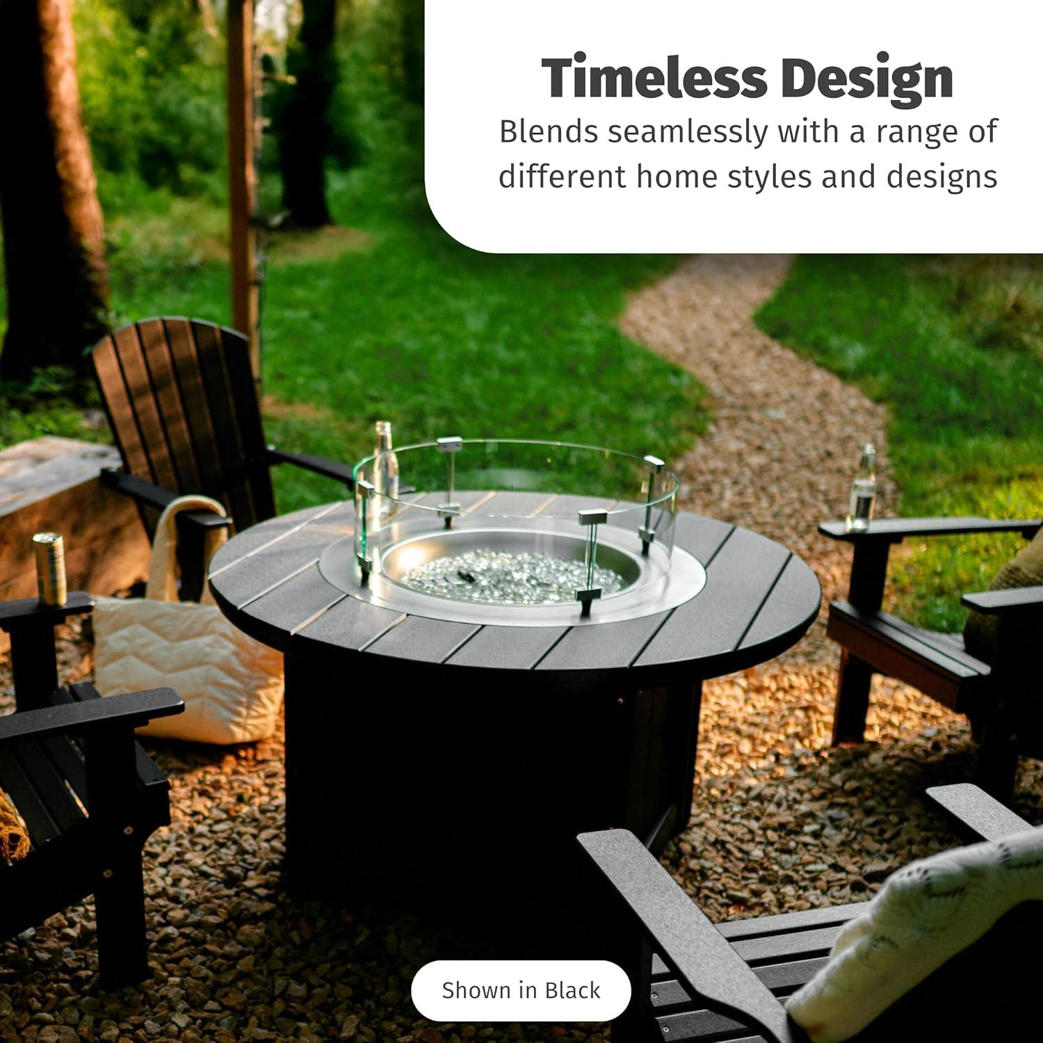 Create a peaceful, relaxing atmosphere with the LuxCraft 46 inch outdoor gas fire pit table, that is sure to become the focal point of your outdoor entertainment space. Enjoy summer evening or cool fall night fires around this round propane fire pit table. Place drinks and snacks around the exterior poly section of the outdoor fireplace table for outside. Our coffee table with fire pit comes with high heat-resistant tempered glass wind guard, fire glass pebbles and a stainless steel burner cover to place on top when not in use. The outdoor firepit table cover keeps the burner dry and clean from rain and debris. Our propane fire pits for outside can be converted to a natural gas with included conversion kit. Crafted from heavy duty HDPE poly lumber, this outdoor fire table is built to handle the elements. Our patio table with fire pit is built with durable materials and stainless steel hardware. Outdoor table with fire pit dimensions: 46″ width x 46″ depth x 25″ height, 172 pounds. Ships freight in 4 boxes, assembly required. Instructions included, #2 square bit required (not included).