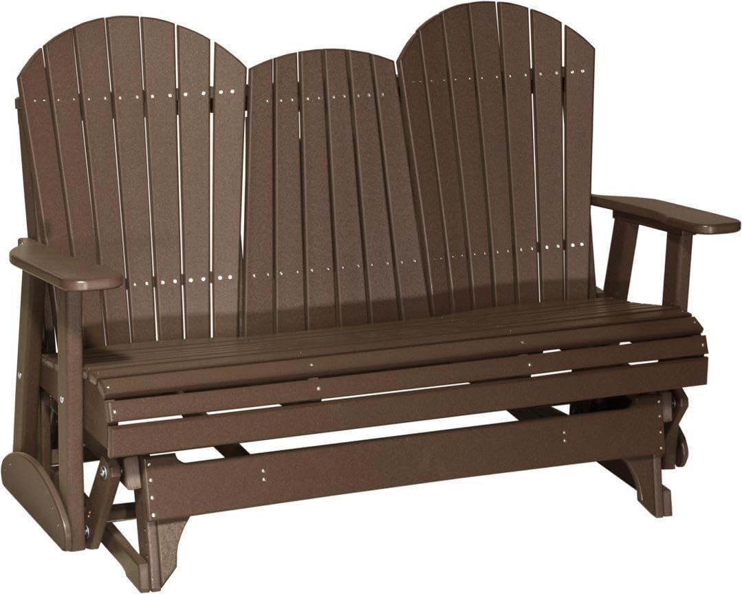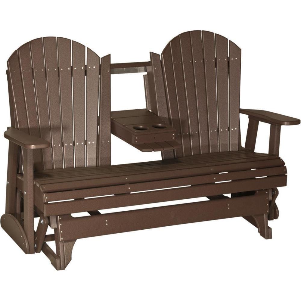 LuxCraft 5' Adirondack Double Glider Bench, 2 Person Outdoor Glider Chair, Outdoor Gliding Loveseat (Coastal Gray & Black)(Chestnut Brown)