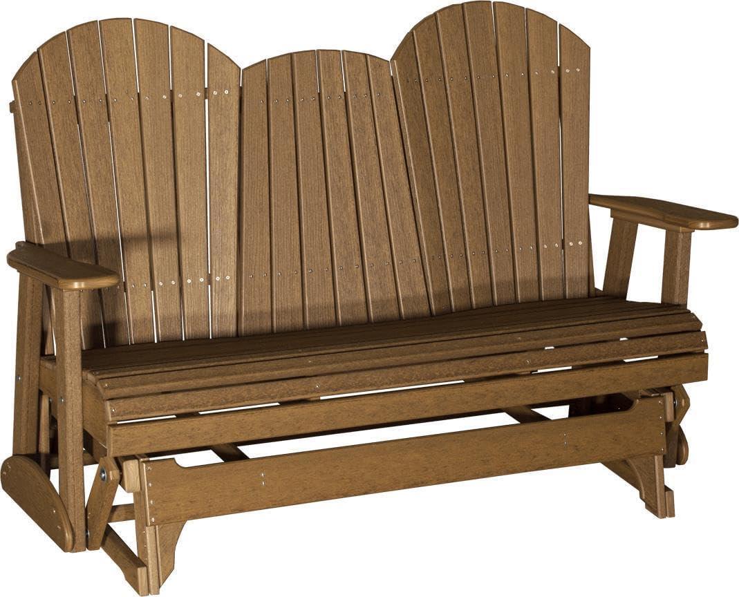 LuxCraft 5' Adirondack Double Glider Bench, 2 Person Outdoor Glider Chair, Outdoor Gliding Loveseat (Coastal Gray & Black)(Premium - Antique Mahogany)