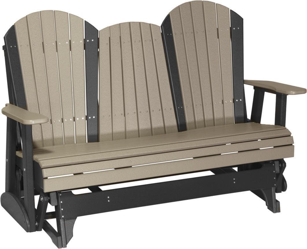 LuxCraft 5′ Adirondack Double Glider Bench, 2 Person Outdoor Glider Chair, Outdoor Gliding Loveseat (Coastal Gray & Black)(Weatherwood on Chestnut Brown)