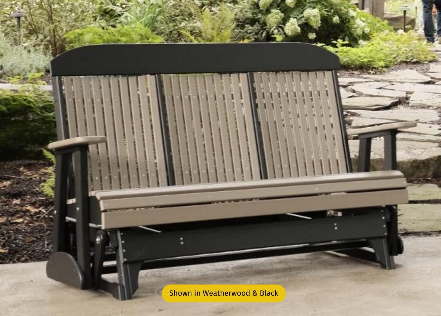 LuxCraft 5' Classic Poly Double Glider with Center Tray (Cedar & Black)(Weatherwood & Black)