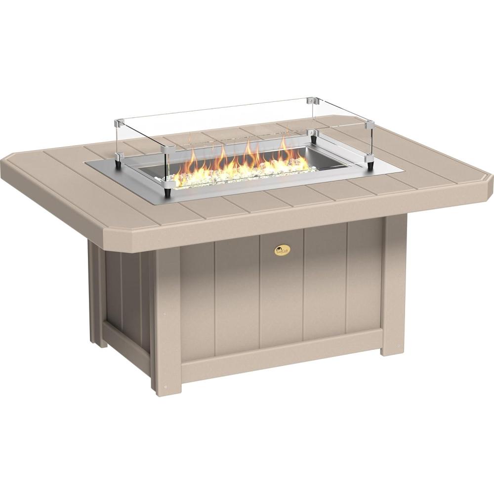 Create a peaceful, relaxing atmosphere with the LuxCraft 51 inch outdoor gas fire pit table, that is sure to become the focal point of your outdoor entertainment space. Enjoy summer evening or cool fall night fires around this rectangular fire pit table. Place drinks and snacks around the exterior poly section of the outdoor fireplace table for outside. Our coffee table with fire pit comes with high heat-resistant tempered glass wind guard, fire glass pebbles and a stainless steel burner cover to place on top when not in use. The outdoor firepit table cover keeps the burner dry and clean from rain and debris. Our propane fire pits for outside can be converted to a natural gas with included conversion kit. Crafted from heavy duty HDPE poly lumber, this outdoor fire table is built to handle the elements. Our patio table with fire pit is built with durable materials and stainless steel hardware. Outdoor table with fire pit dimensions: 51.5″ width x 38.5″ depth x 24″ height, 172 pounds. Ships ground in 3 boxes, assembly required. Instructions included, #2 square bit required (not included).