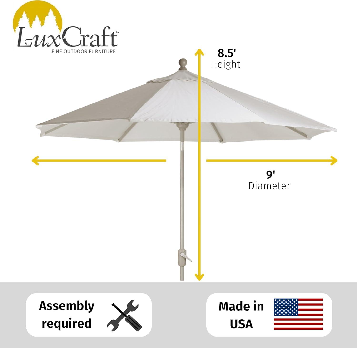 imageLuxCraft 9 Foot Patio Umbrella with Weather Resistant Fabric  Outdoor Umbrellas for Patio with Tilting Aluminum Frame Black or White Umbrella Frame for OutsideGingkoWhite Frame