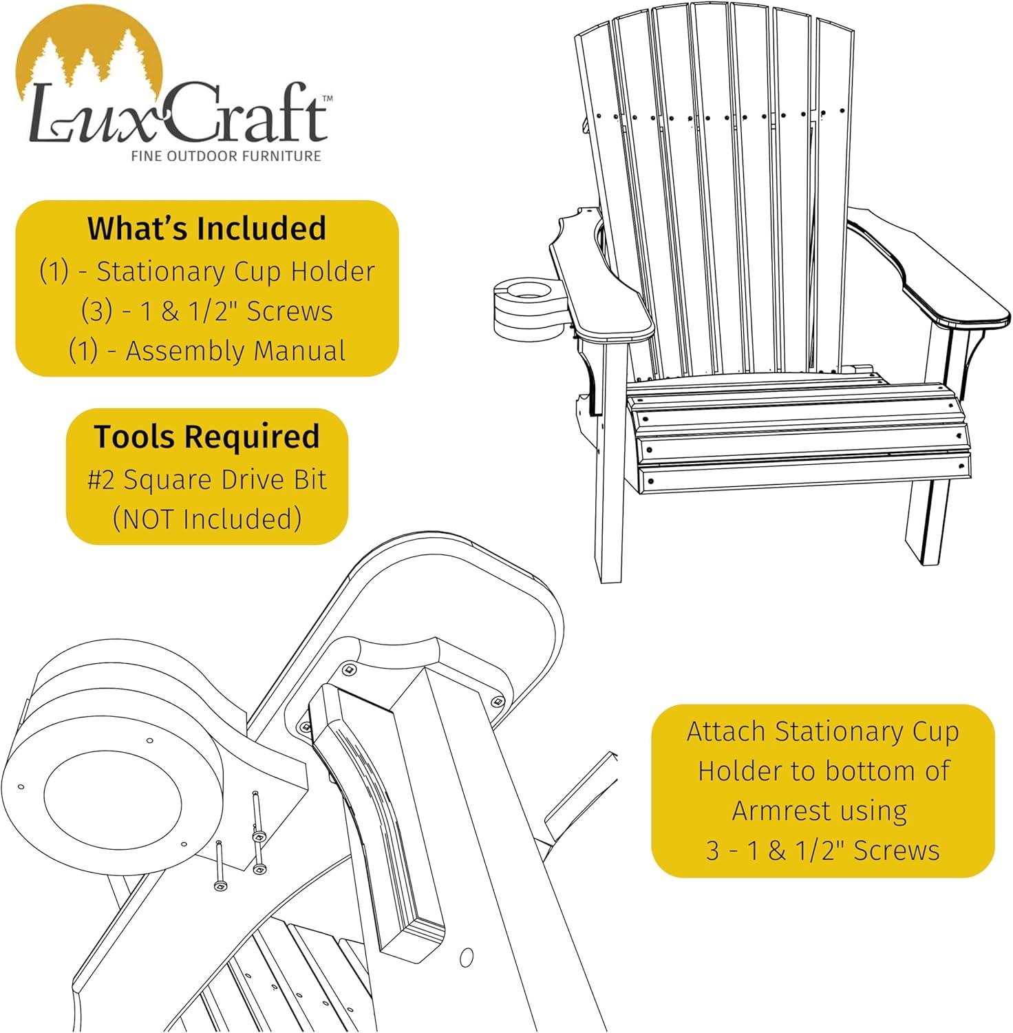 Versatile Fit – The LuxCraft cup holder for lawn chair is designed to fit seamlessly with all LuxCraft poly Adirondack chairs, outdoor gliders, patio swings, beach chairs, and other camping chairs, ensuring a perfect fit for your outdoor furniture.