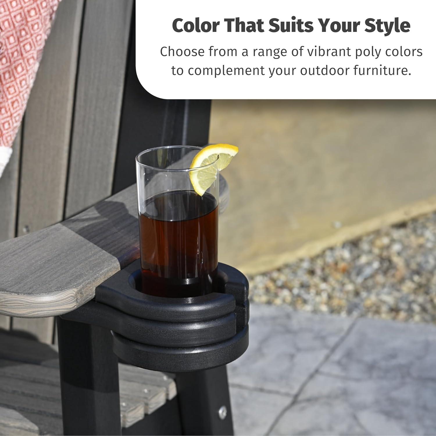 The LuxCraft Adirondack Chair Cup Holder is designed to elevate your outdoor lounging experience. Crafted with LuxCraft’s commitment to quality, this adirondack chair drink holder is made to fit perfectly with your patio chair, providing a convenient solution for keeping your beverages within easy reach. Compatible with a variety of deck chair styles, this outdoor cup holder is an essential addition to any outdoor space. Constructed from high-quality, weather-resistant materials right here in America, this cup holder for Adirondack chair is built to last. Whether paired with a tall Adirondack chair or a polywood glider, this drink holder attachment enhances your seating area while standing up to the outdoor elements. There's no need for a bulky table to hold your beach drink or place your beverage on another chair. Our Adirondack chair with cup holder is the perfect solution to keep your drink within reach and enjoy your outdoor space with ease. The LuxCraft Adirondack cup holder is designed to securely hold a wide range of drinkware, from your classic Yeti beer can holder to wine glasses, ensuring that your drink is always within reach. Whether you're enjoying a hot coffee, a refreshing iced tea, or a wine holder for chair, the cup holder's sturdy design prevents spills, keeping your beverage safe while you relax. Poolside cup holder or for your wood patio chair, this cup holder can handle all your outdoor needs. Easy to install and compatible with Adirondack patio chairs, polywood gliders, and even porch swings with cup holders, the LuxCraft camping chair cup holder is the perfect addition to your outdoor space. It fits perfectly with composite Adirondack chairs, and more. Transform your outdoor seating area with the LuxCraft Adirondack Chair Cup Holder. Adirondack polywood chairs, wood Adirondack chair, or poly Adirondack chair, no matter your chair type, this drink holder enhances your outdoor experience with ease and convenience.