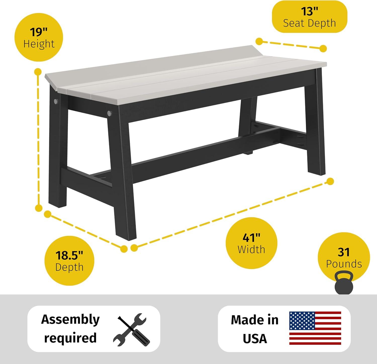 LuxCraft Café Poly Outdoor Dining Bench (Antique Mahogany, 41")(Coastal Gray & Black)