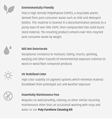 Built to Last – Crafted from durable, weather-resistant HDPE poly lumber that is weather-resistant and low maintenance. Stainless steel hardware