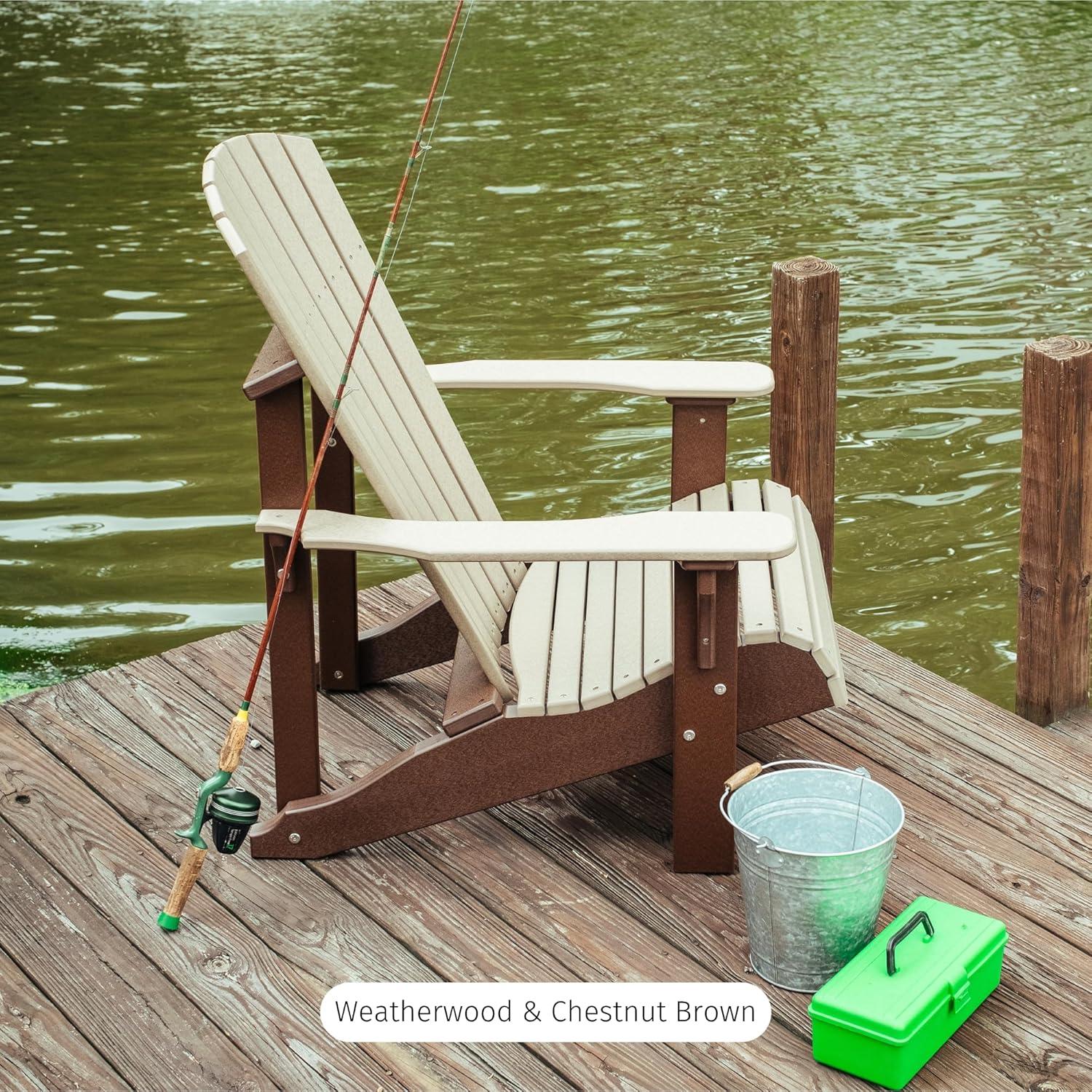 The LuxCraft Deluxe Adirondack Chairs are ergonomically designed for superior comfort and durability. Place chairs around a firepit or outdoor patio to create an inviting space for social gatherings with friends and family. Pair with a LuxCraft End Table to complete the look and have a place to rest your snacks or current reading material. The Adirondack style is popular for a reason, with its slanted seat, straight back, wide arm rests and foot rest all help to provide relief and comfort. Feel the weight lift from your shoulders and the stress melt away as you lounge in your Adirondack chair. Dimensions: Overall – 31″ Width x 36.5″ Depth x 38″ Height. Seat – 23″ Seat Width x 19.5″ Seat Depth. Overall Weight – 52 Pounds. Made from poly lumber, a plastic resin material made from laundry bottles and milk jugs. This plastic is then pressed into solid boards that are used to create outdoor products. Poly is durable and can handle outdoor conditions with ease. To clean your outdoor poly furniture we recommend the LuxCraft Poly Furniture Cleaning Kit or using a soapy water mixture. Residential lifetime limited warranty or commercial 5-year limited warranty.