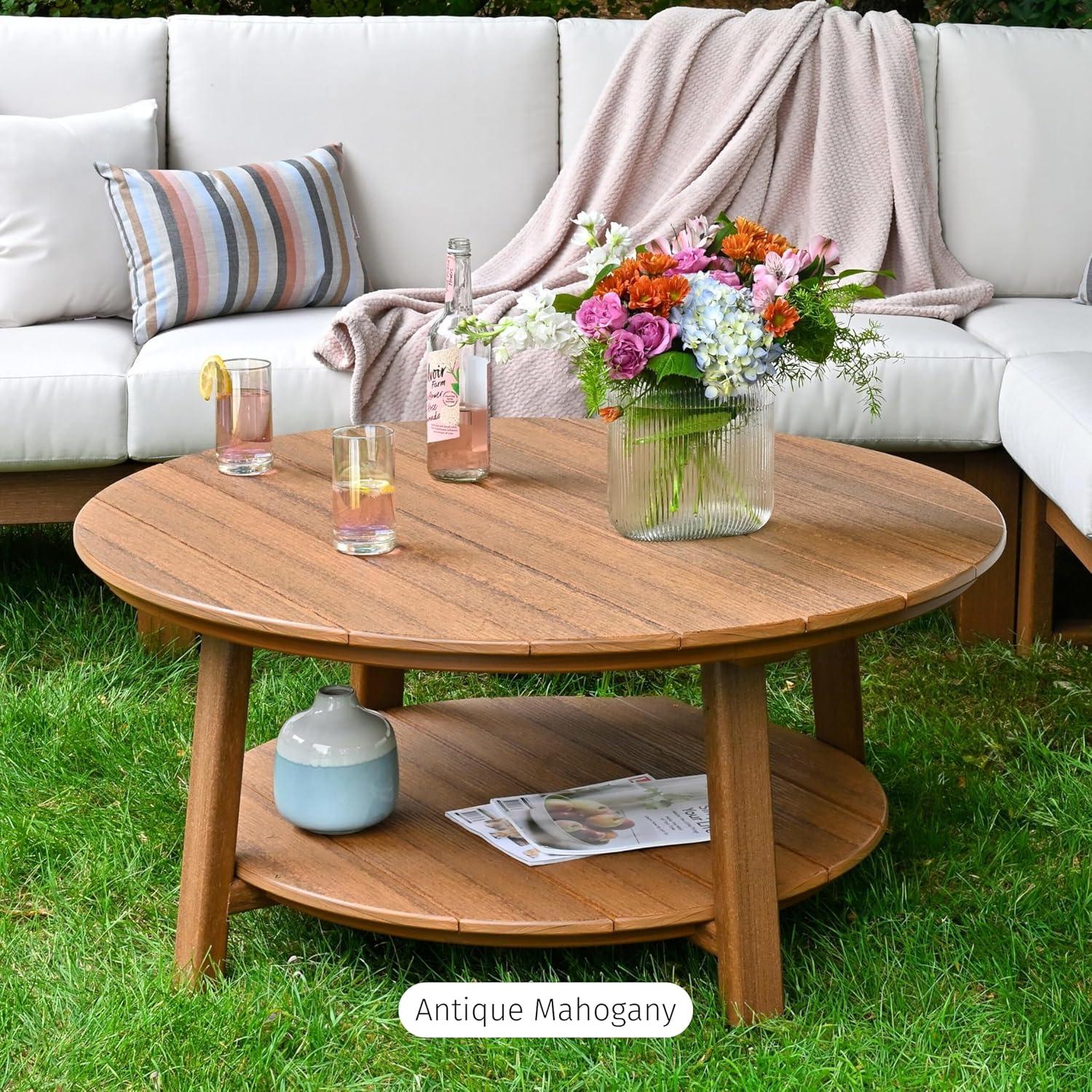 LuxCraft Deluxe Poly Round Outdoor Coffee Table, Two Tier Coffee Table, Round Conversation Tables for Outside Patio with Lower Shelf – Amish Made in USA (Aruba Blue & White)(Chestnut Brown)