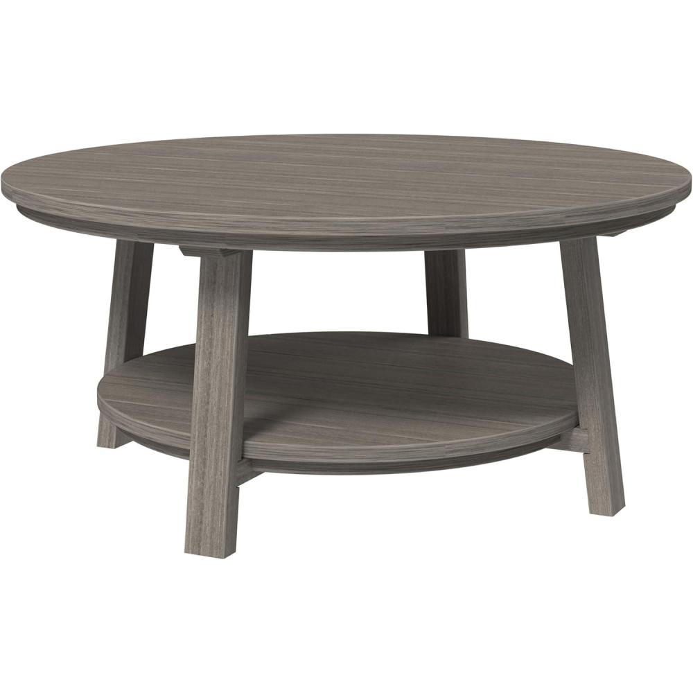 imageLuxCraft Deluxe Poly Round Outdoor Coffee Table Two Tier Coffee Table Round Conversation Tables for Outside Patio with Lower Shelf  Amish Made in USA Aruba Blue ampamp WhiteCoastal Gray