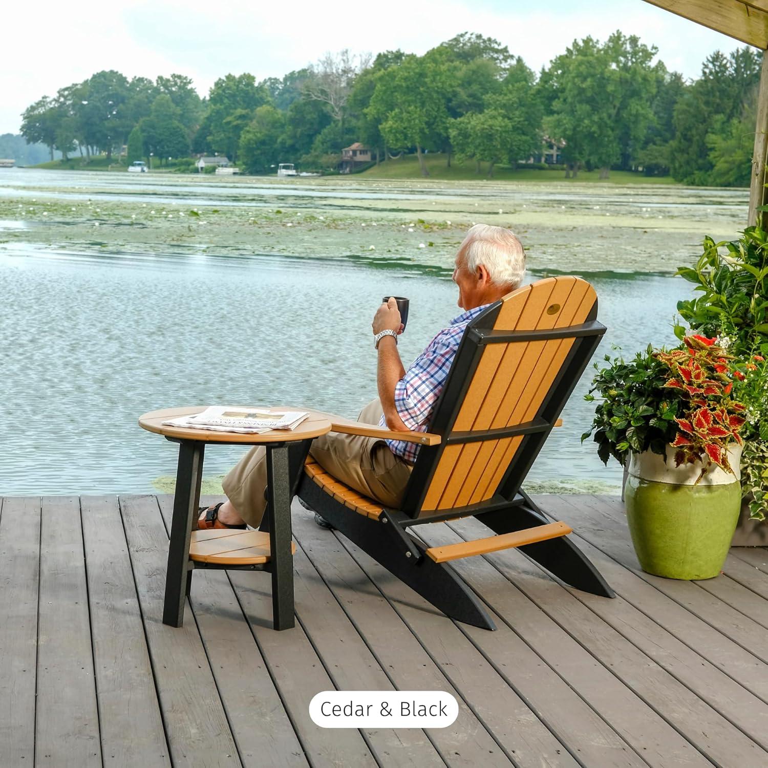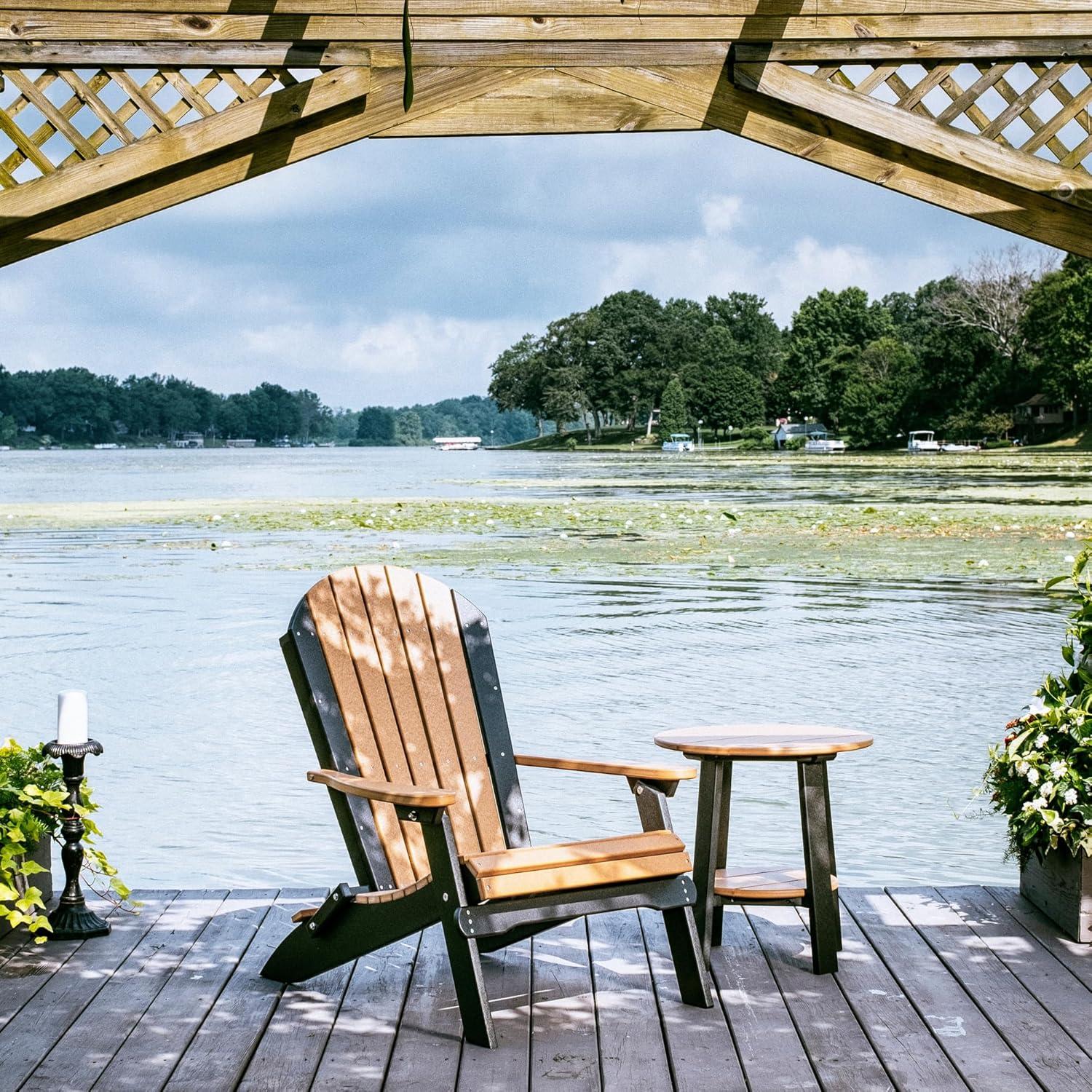 Enjoy what Mother Nature has to offer with this simple, yet elegant folding Adirondack chair. Contoured seat and rounded edges provide premium comfort. Folds up for easy storing and traveling. Place in your outdoor patio space, or around a fire pit to create an inviting lounge area for friends and family. Dimensions – Overall: 31.25″W × 38″D × 39″H, Seat: 23″SW × 19″SD, Weight: 45 lbs. Ships fully assembled and is ready to use right out of the box. Made from poly lumber (HDPE) a plastic made from post-consumer recycled waste like milk jugs and laundry bottles. This plastic is melted and pressed into dense boards that can be used as a building material, such as outdoor furniture. Our poly is 90% recycled plastic by weight, so you can feel good about your poly furniture. Poly is also exceptionally resistant to splintering, warping, moisture and many other environmental factors. Built with UV stabilized pigments to minimize fading through sun and weather exposure.