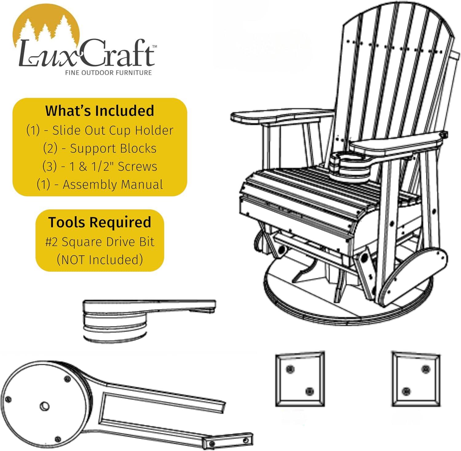 The LuxCraft Slideout Glider Cup Holder is designed to elevate your outdoor lounging experience. Crafted with LuxCraft’s commitment to quality, this slideout drink holder is made to fit perfectly with your LuxCraft glider chair, providing a convenient solution for keeping your beverages within easy reach. Compatible with LuxCraft outdoor gliders, this outdoor cup holder is an essential addition to any outdoor space. Constructed from high-quality, weather-resistant materials right here in America, this slideout cup holder for outdoor gliders are built to last. This drink holder attachment enhances your seating area while standing up to the outdoor elements. There's no need for a bulky table to hold your beach drink or place your beverage on another chair. Our outdoor gliders with slideout cup holders are the perfect solution to keep your drink within reach. The LuxCraft slideout cup holder is designed to securely hold a wide range of drinkware, from your classic Yeti beer can holder to wine glasses, ensuring that your drink is always within reach. Whether you're enjoying a hot coffee, a refreshing iced tea, or a wine holder for chair, the cup holder's sturdy design prevents spills, keeping your beverage safe while you relax. Poolside cup holder for your poly patio glider, this cup holder can handle all your outdoor needs. Easy to install and compatible with all LuxCraft gliders, this hidden cup holder is the perfect addition to your outdoor space. Transform your outdoor seating area with the LuxCraft Slideout Cup Holder. This drink holder enhances your outdoor living with both ease and convenience.