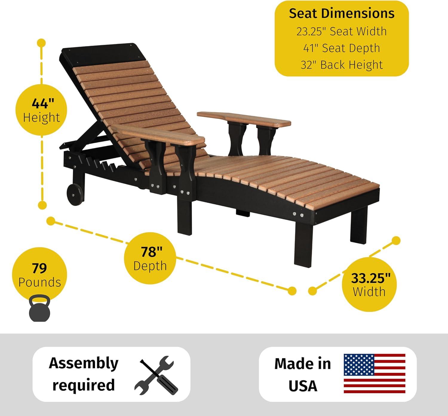 Enjoy what Mother Nature has to offer with this simple, chaise lounge chair. Dimensions – Overall: Overall: 33.25″W × 78″D × 44″H, Seat: 23.25″SW × 41″SD, Weight: 79 lbs. Assembly is required, however, thorough instructions are included for easy assembly. — Made from poly lumber (HDPE) a plastic made from post-consumer recycled waste like milk jugs and laundry bottles. This plastic is melted and pressed into dense boards that can be used as a building material, such as outdoor furniture. Our poly is 90% recycled plastic by weight, so you can feel good about your poly furniture. Poly is also exceptionally resistant to splintering, warping, moisture and many other environmental factors. Built with UV stabilized pigments to minimize fading through sun and weather exposure. — LuxCraft products are backed by a limited lifetime residential warranty, and a 5-year limited commercial warranty. Defective and non-conforming products or parts are replaced at no cost to you. Contact our sellers for more information.