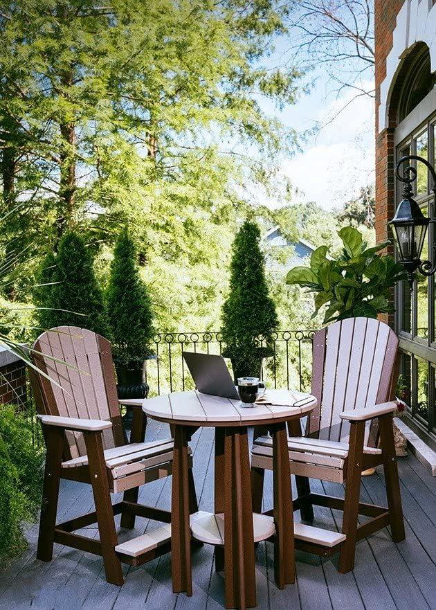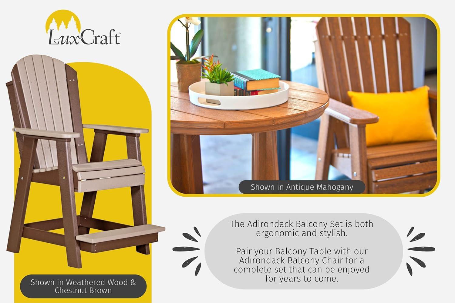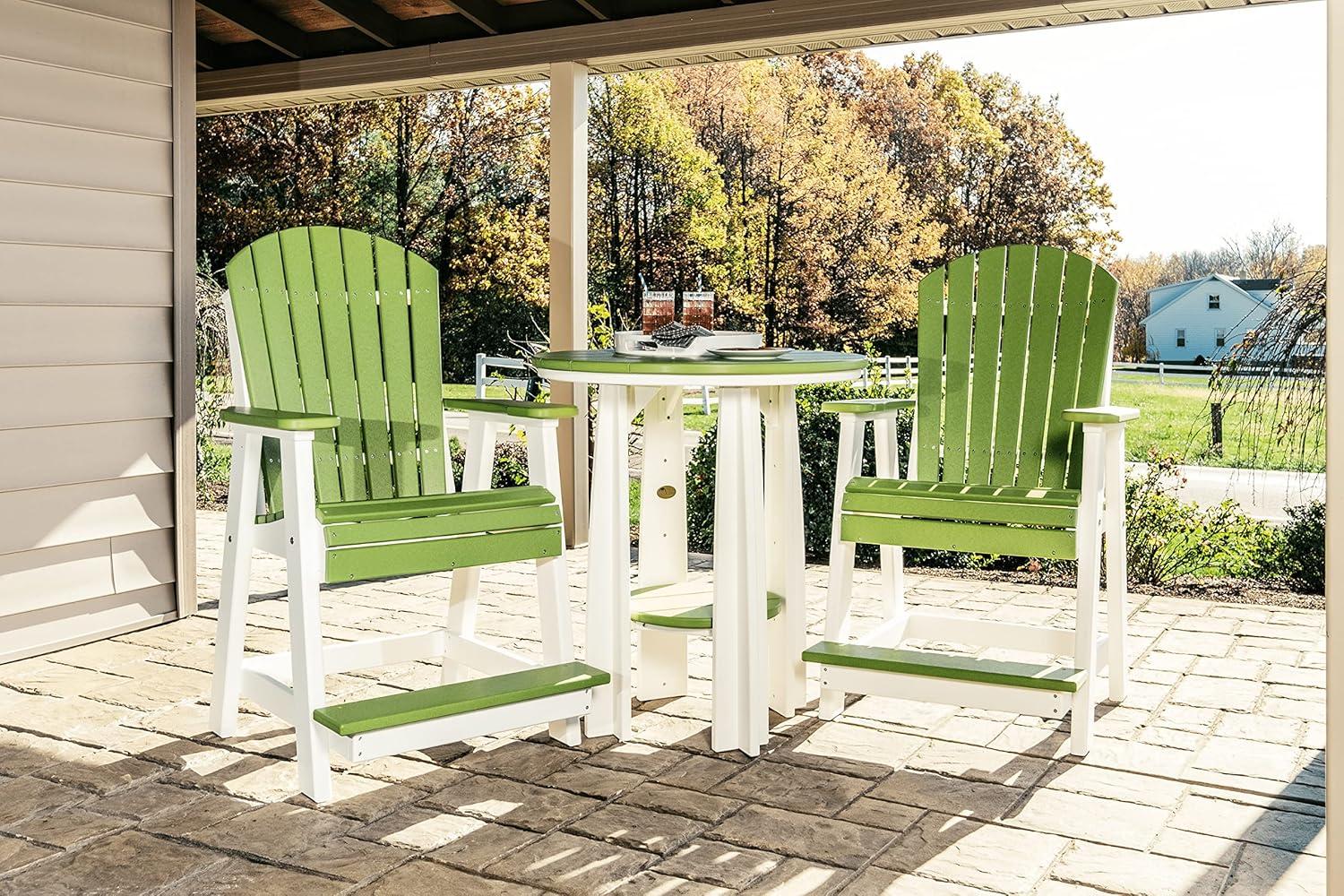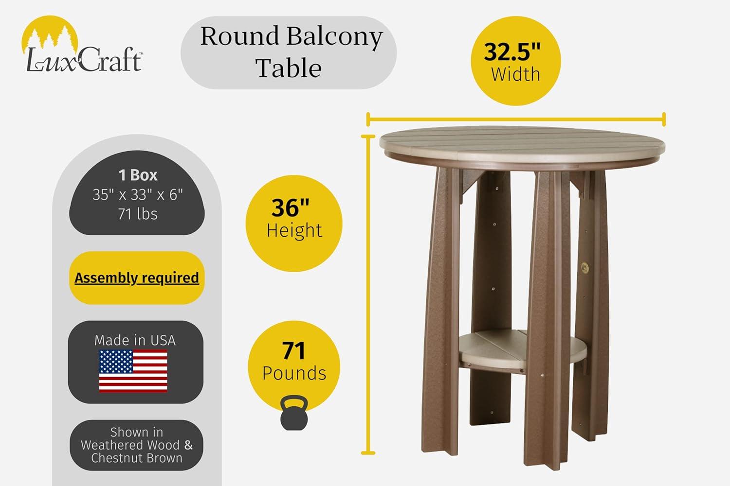 Enjoy the gentle breeze and cooling shade underneath your umbrella at your LuxCraft counter height table. Our outdoor dining table features a 32.5″ round tabletop with a built in umbrella hole for added convenience. Standing 36″ tall, this round table is counter height and pairs well with the balcony dining chairs. Add up to four chairs around the 32.5″ balcony table. Set your feet up on the lower shelf and relax in style and comfort. Made from durable poly (HDPE) a dense plastic resin made from laundry and milk bottles that are cleaned, melted and pressed into long boards. These poly boards are then cut and assembled into outdoor products. Poly is a great alternative to wood as it is exceptionally resistant to rot and wear. Poly is also very low maintenance, only requiring occasional washing with LuxCraft Poly Furniture Cleaning Kit or with a mild soapy water solution. Rest assured knowing your LuxCraft poly outdoor furniture will last through many seasons of enjoyment. Overall Dimensions: 32.5″ Width x 32.5″ Depth x 36″ Height, 71 lbs.