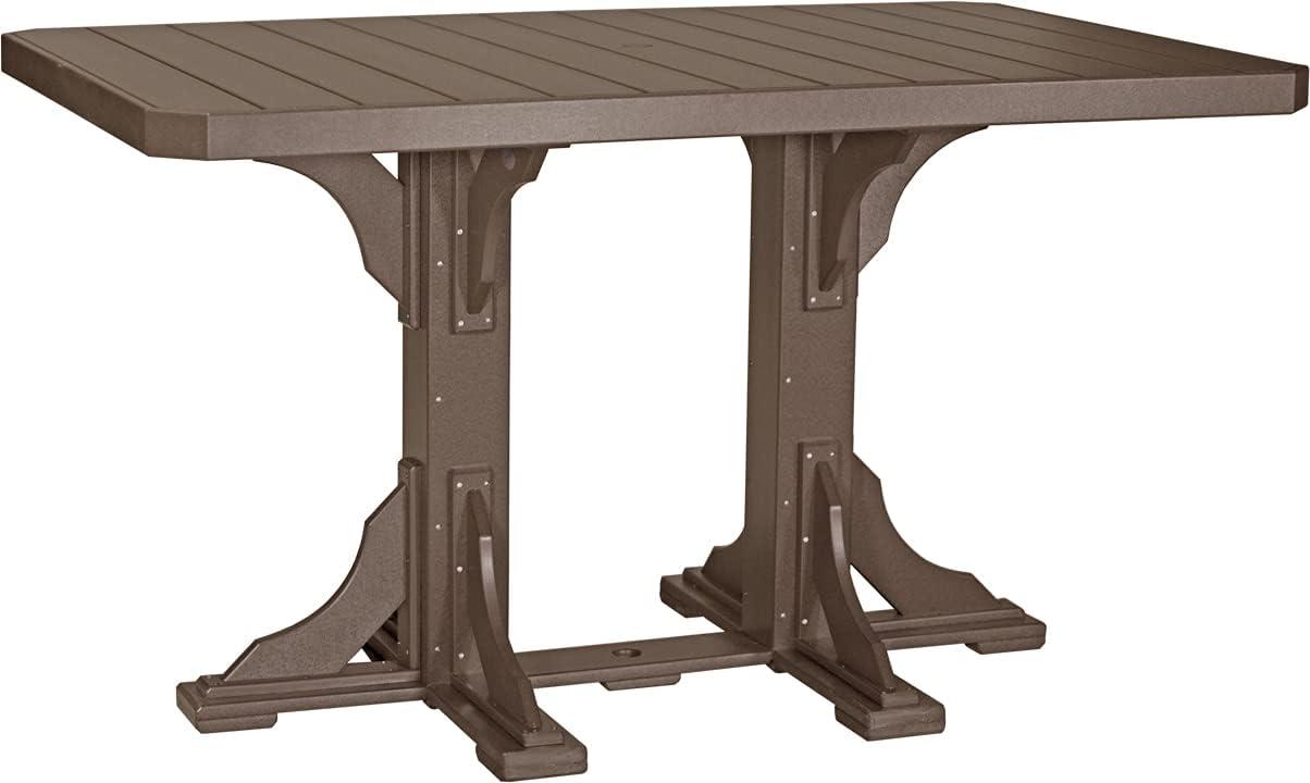 LuxCraft Poly 4' x 6' Rectangular Dining Table, 36.25" Height, Outdoor Patio Table, Made with Recycled Plastics, Made in USA (Weatherwood)(Chestnut Brown)