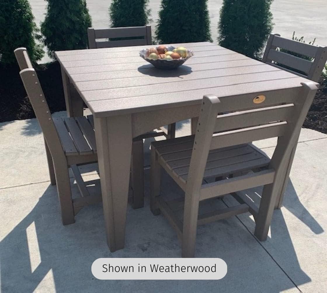LuxCraft Poly Island Dining Table, 44″ Square Outdoor Patio Table, Made with Recycled Plastics, Made in USA (Weatherwood & Chestnut Brown)(Coastal Gray)