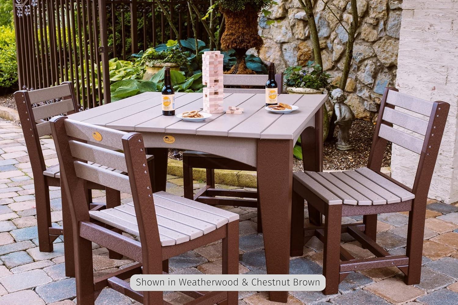 LuxCraft Poly Island Dining Table, 44" Square Outdoor Patio Table, Made with Recycled Plastics, Made in USA (Weatherwood & Chestnut Brown)(Coastal Gray & Black)