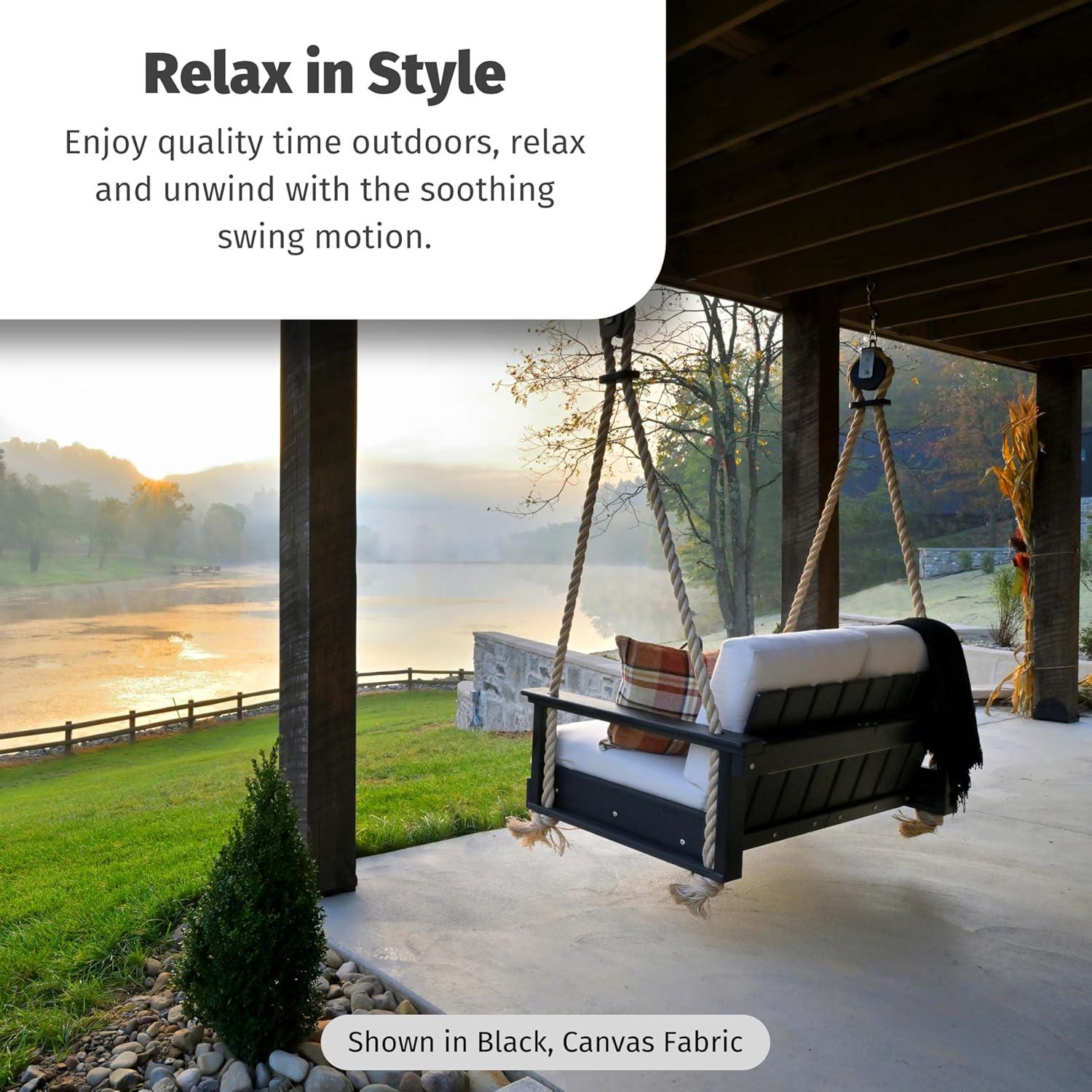 Create a peaceful, relaxing atmosphere with LuxCraft loveseat porch swings, that is sure to become the hangout spot of your outdoor entertainment space. Enjoy summer evenings or cool fall night fires cozied up on the soft outdoor cushions. Standard with rope chain that adds a touch of rustic charm to the modern appearance of the swing. Pair with the LuxCraft deep seat cushion outdoor furniture collection to complete the look. Crafted from heavy duty HDPE poly lumber, this outdoor swing bench is built to handle the elements. Weather-resistant zippered cushions are very low maintenance. Crafted from durable, water and stain repellent fabric that is designed to stay beautiful over time. Our deep seat patio furniture is built with durable materials and assembled with stainless steel hardware. Patio swing bench dimensions: 59″ width x 34″ depth x 29″ height – 17″ armrest height – 50″ seat width x 23.5″ seat depth x 10.75″ seat height – 72″ rope length, 54.75″ rope center distance, 44″ chain length – 159 pounds. Assembly instructions and allen key included, 1/2″ wrench required (not included)