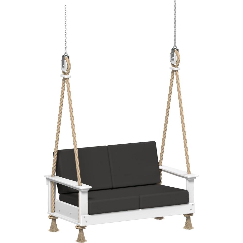Create a peaceful, relaxing atmosphere with LuxCraft loveseat porch swings, that is sure to become the hangout spot of your outdoor entertainment space. Enjoy summer evenings or cool fall night fires cozied up on the soft outdoor cushions. Standard with rope chain that adds a touch of rustic charm to the modern appearance of the swing. Pair with the LuxCraft deep seat cushion outdoor furniture collection to complete the look. Crafted from heavy duty HDPE poly lumber, this outdoor swing bench is built to handle the elements. Weather-resistant zippered cushions are very low maintenance. Crafted from durable, water and stain repellent fabric that is designed to stay beautiful over time. Our deep seat patio furniture is built with durable materials and assembled with stainless steel hardware. Patio swing bench dimensions: 59″ width x 34″ depth x 29″ height – 17″ armrest height – 50″ seat width x 23.5″ seat depth x 10.75″ seat height – 72″ rope length, 54.75″ rope center distance, 44″ chain length – 159 pounds. Assembly instructions and allen key included, 1/2″ wrench required (not included)