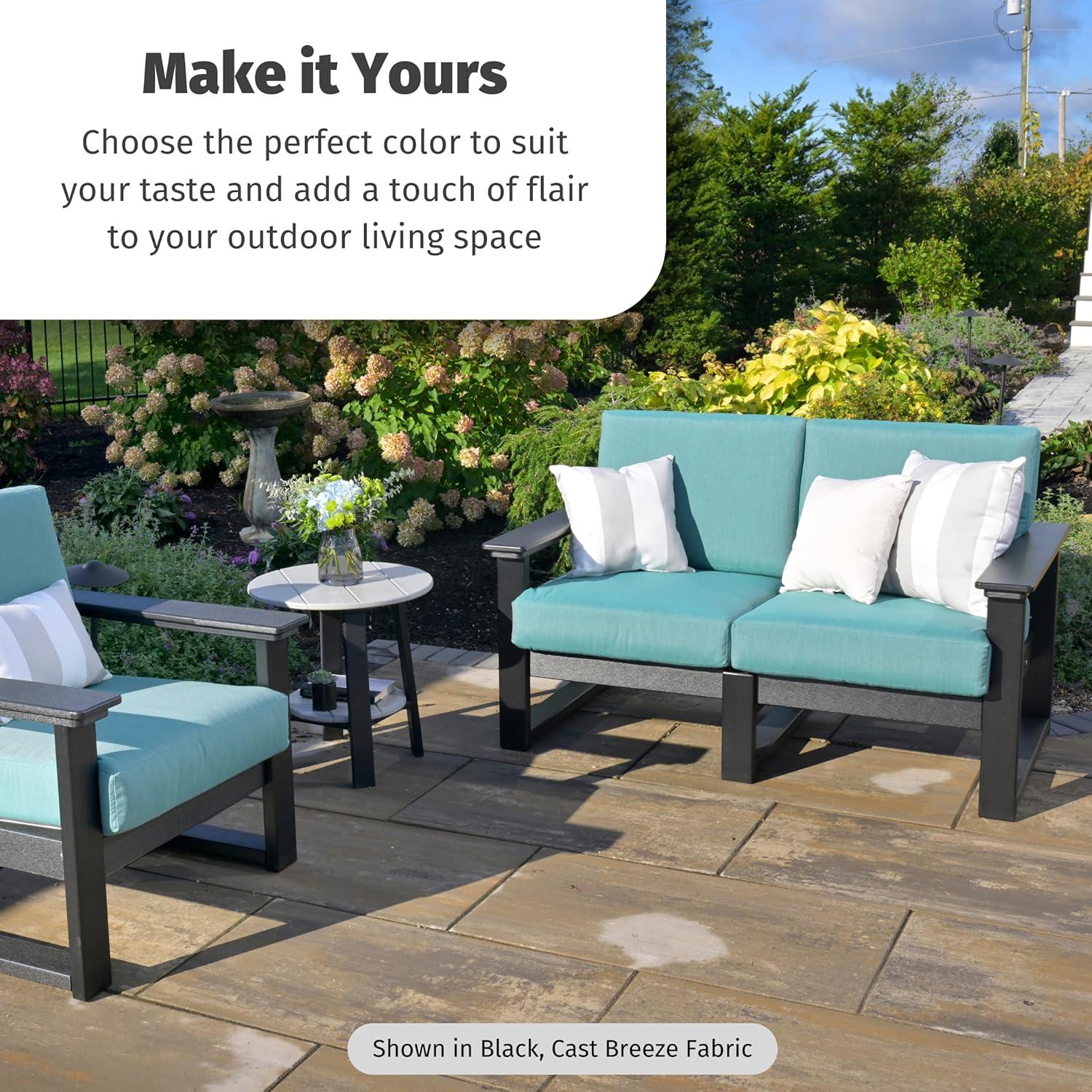 LuxCraft Poly Lanai Deep Seat 2 Person Outdoor Loveseat, Small Patio Sofa with Weather Resistant Cushions, Modern Outdoor Couch for 2 – USA Amish Made (Black, Spectrum Dove Fabric)(Black Cast Breeze Fabric)