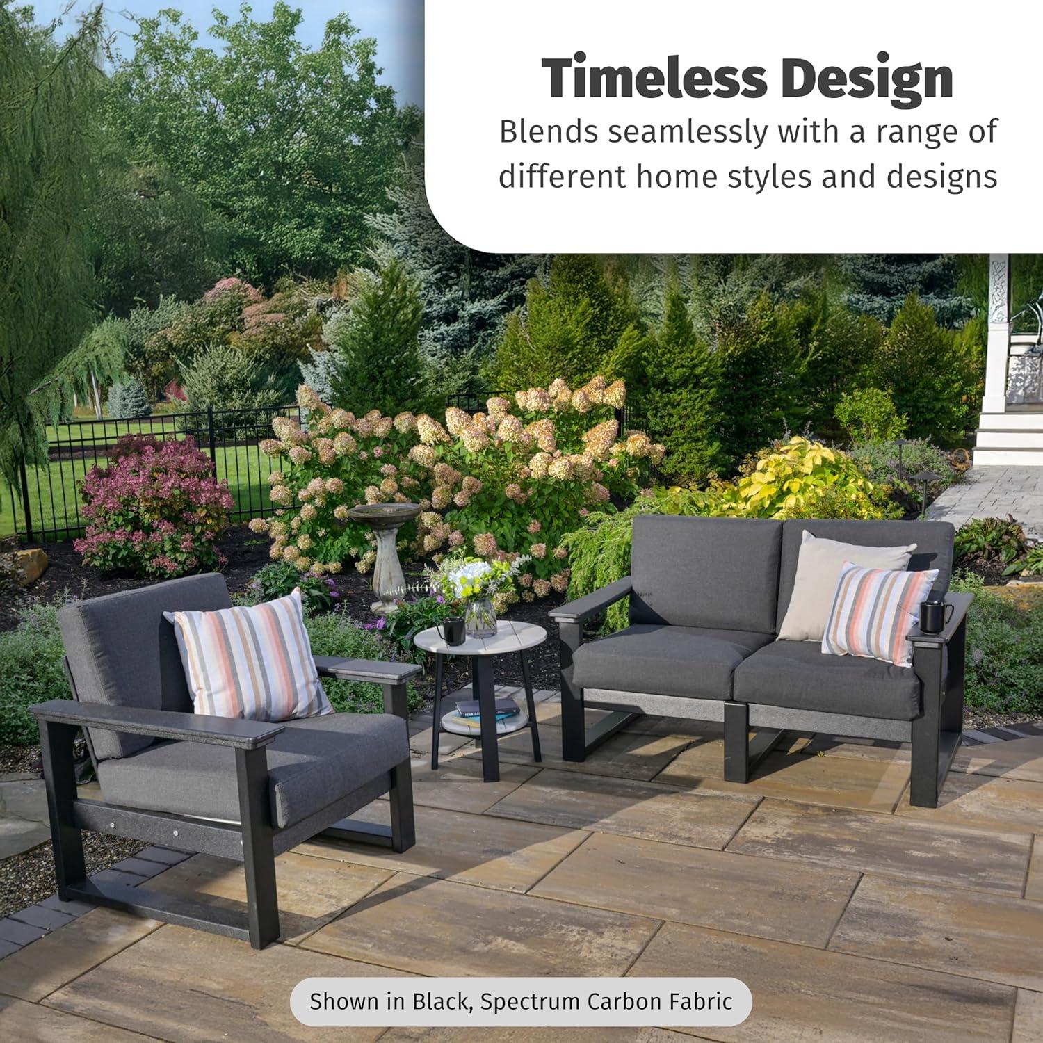 LuxCraft Poly Lanai Deep Seat 2 Person Outdoor Loveseat, Small Patio Sofa with Weather Resistant Cushions, Modern Outdoor Couch for 2 – USA Amish Made (Black, Spectrum Dove Fabric)(Black Spectrum Carbon Fabric)