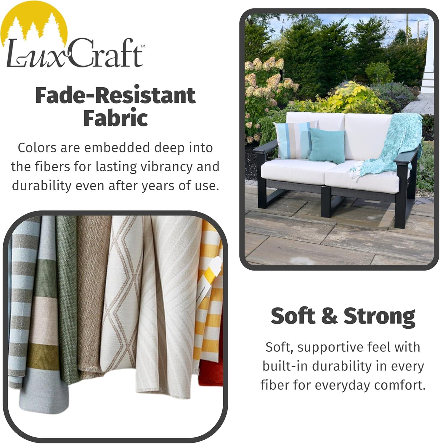 Built to Last – The LuxCraft Lanai Deep Seat collection of outdoor furniture is crafted from durable, weather-resistant HDPE poly lumber, weather-resistant fabric for the plush cushions, and assembled with stainless steel hardware