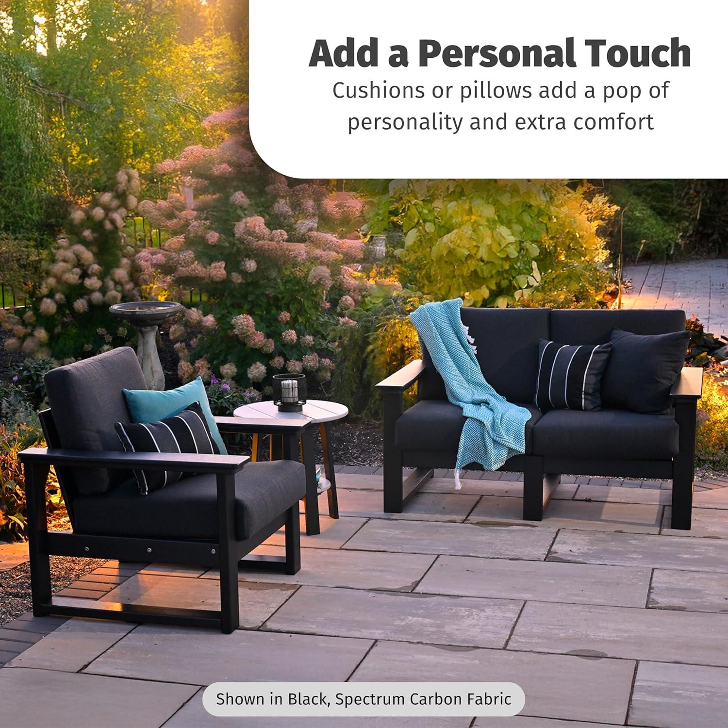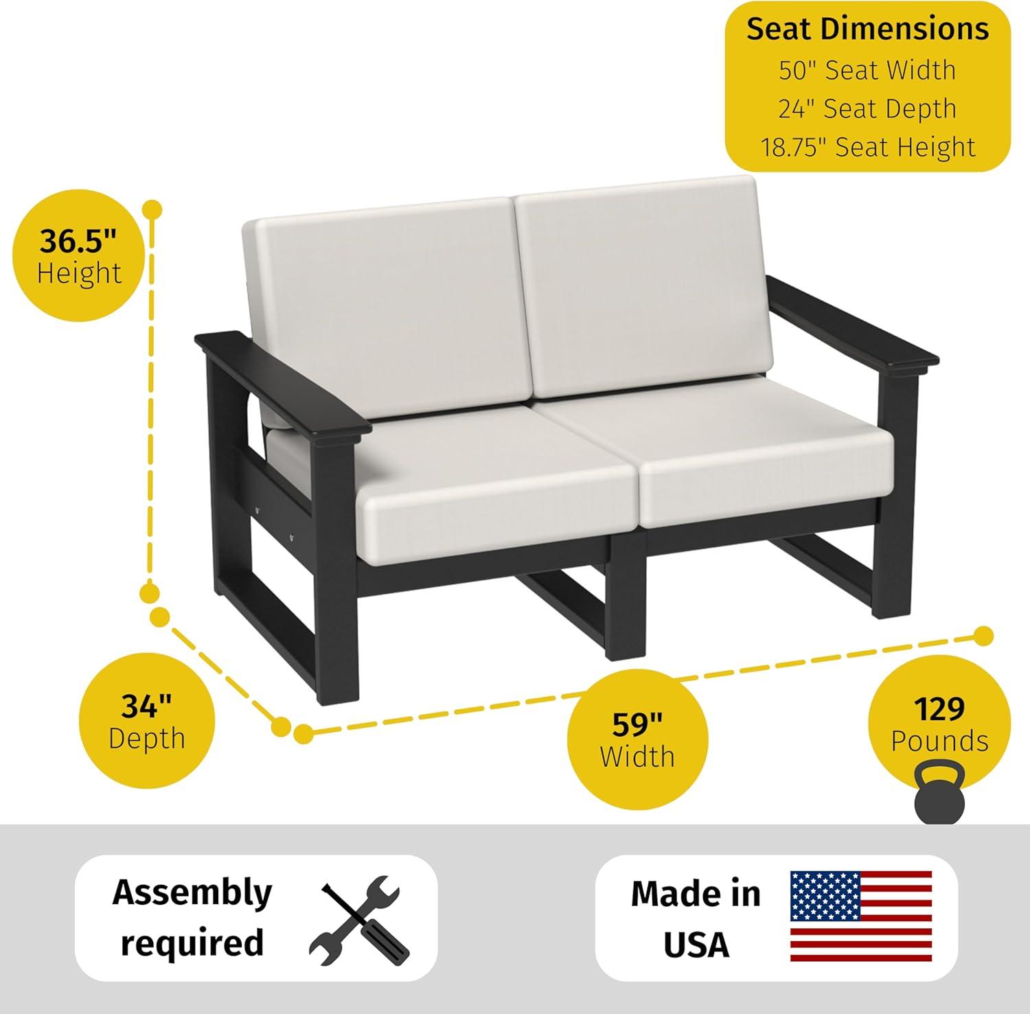 LuxCraft Poly Lanai Deep Seat 2 Person Outdoor Loveseat, Small Patio Sofa with Weather Resistant Cushions, Modern Outdoor Couch for 2 - USA Amish Made (Black, Spectrum Dove Fabric)(Black Spectrum Dove Fabric)