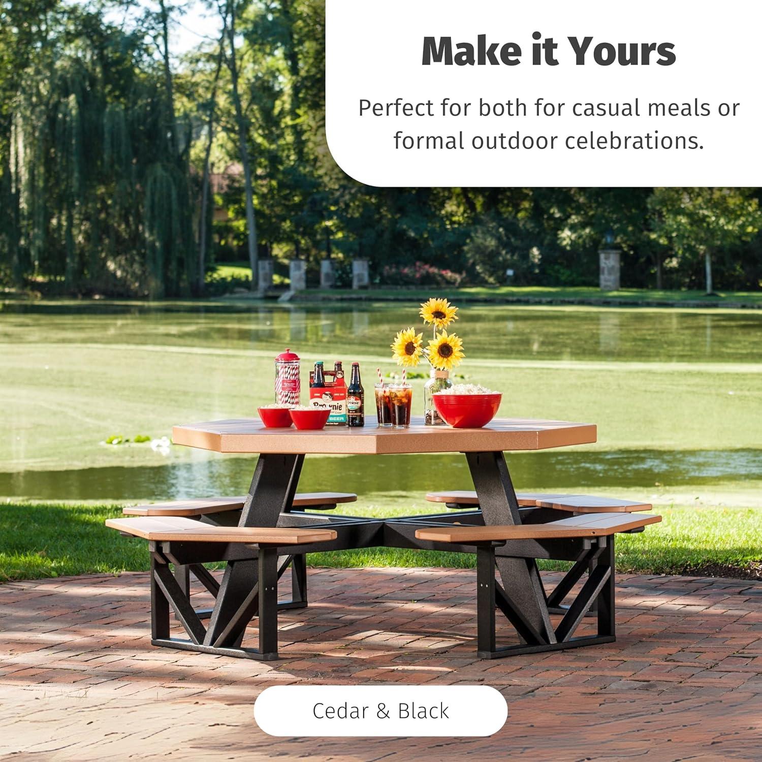 LuxCraft Poly Octagon Picnic Table – Outside Table for Adults & Kids, Seats 8, UV Resistant and Heavy Duty, Durable Outdoor Furniture, Amish Made in USA (Cedar & Black)(Black)