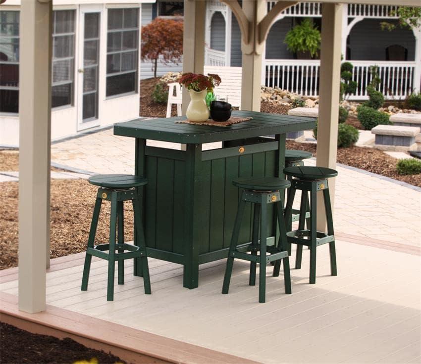 Paired with your outdoor poly bar or pub table, these swivel top poly bar stools offer a comfortable way for you and your guests to enjoy a meal and drinks while enjoying a day outdoors. Each stool is crafted from poly lumber that comes from post consumer plastic (milk jugs and detergent bottles) making it eco-friendly and extremely durable. Because of this, you don't have to worry about the typical maintenance that plagues wooden or metal outdoor furniture. Your new chairs will maintain their beautiful color, due to a UV inhibitor that is built into the poly material. And, you don't have to worry about salt spray next to the beach, an overactive wet or frozen season and mold, mildew and termites will not threaten your new bar stools. These stools are made to last decades outdoors!