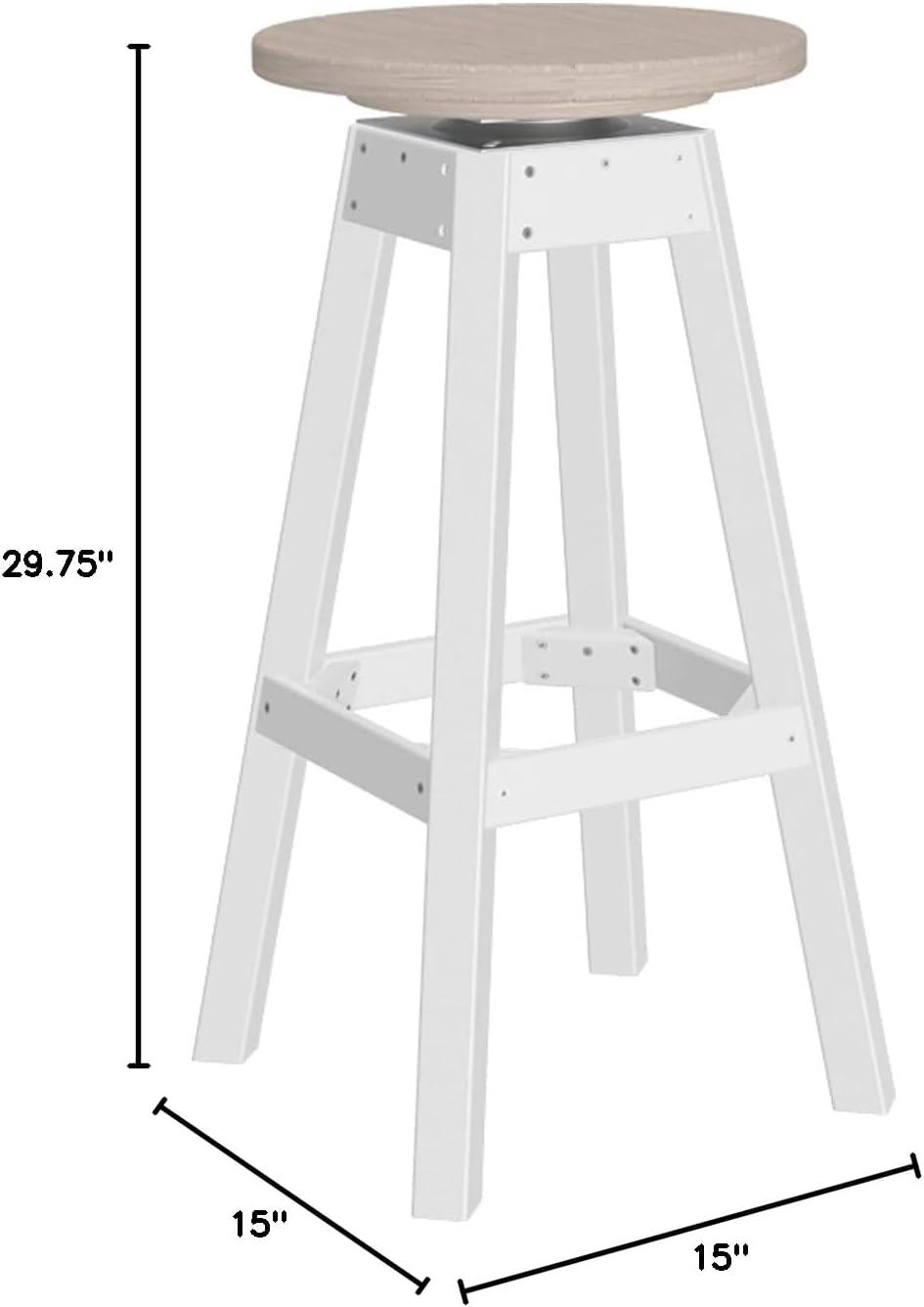 Paired with your outdoor poly bar or pub table, these swivel top poly bar stools offer a comfortable way for you and your guests to enjoy a meal and drinks while enjoying a day outdoors. Each stool is crafted from poly lumber that comes from post consumer plastic (milk jugs and detergent bottles) making it eco-friendly and extremely durable. Because of this, you don't have to worry about the typical maintenance that plagues wooden or metal outdoor furniture. Your new chairs will maintain their beautiful color, due to a UV inhibitor that is built into the poly material. And, you don't have to worry about salt spray next to the beach, an overactive wet or frozen season and mold, mildew and termites will not threaten your new bar stools. These stools are made to last decades outdoors!