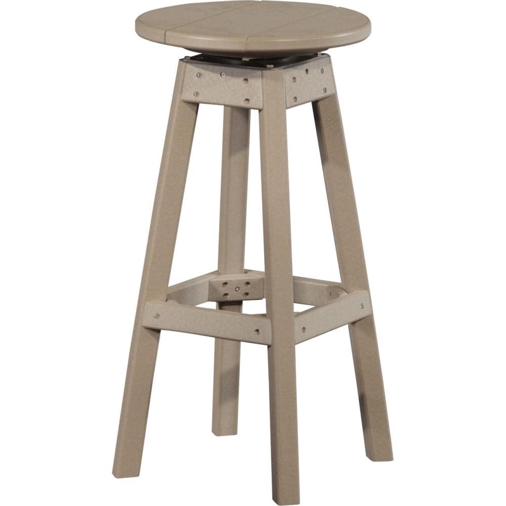 Paired with your outdoor poly bar or pub table, these swivel top poly bar stools offer a comfortable way for you and your guests to enjoy a meal and drinks while enjoying a day outdoors. Each stool is crafted from poly lumber that comes from post consumer plastic (milk jugs and detergent bottles) making it eco-friendly and extremely durable. Because of this, you don't have to worry about the typical maintenance that plagues wooden or metal outdoor furniture. Your new chairs will maintain their beautiful color, due to a UV inhibitor that is built into the poly material. And, you don't have to worry about salt spray next to the beach, an overactive wet or frozen season and mold, mildew and termites will not threaten your new bar stools. These stools are made to last decades outdoors!