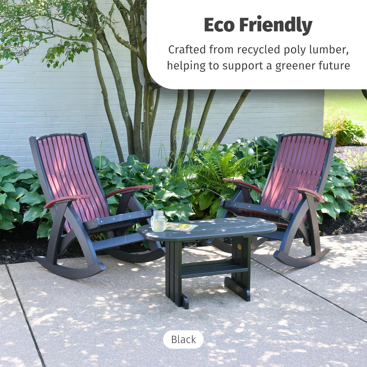 LuxCraft Poly Outdoor Coffee Table, Oval Patio Table with Shelf, Weather Resistant Low Tables for Adirondack Chairs & Outdoor Seating - Amish Made in USA (Cherrywood & Black)(Cherrywood & Black)