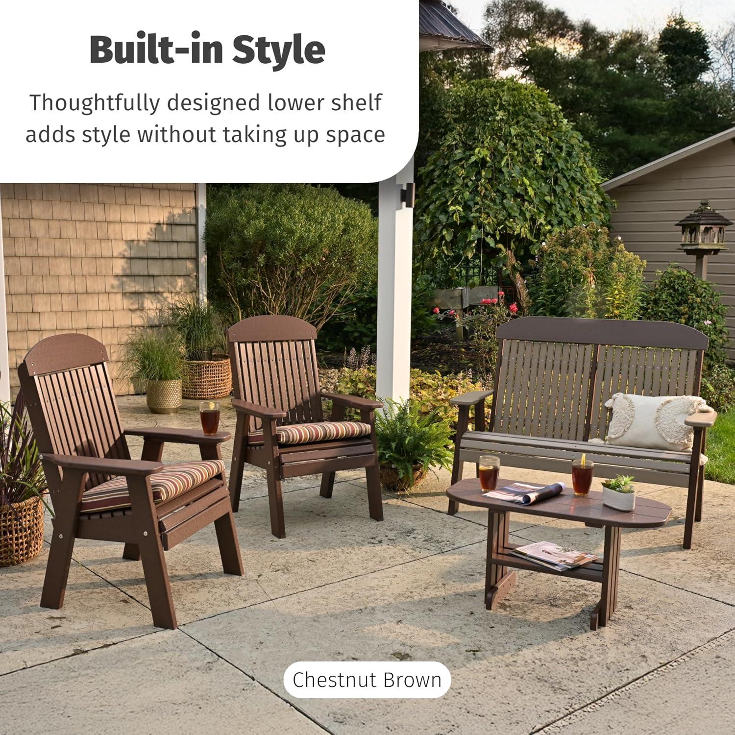 LuxCraft Poly Outdoor Coffee Table, Oval Patio Table with Shelf, Weather Resistant Low Tables for Adirondack Chairs & Outdoor Seating – Amish Made in USA (Cherrywood & Black)(Chestnut Brown)