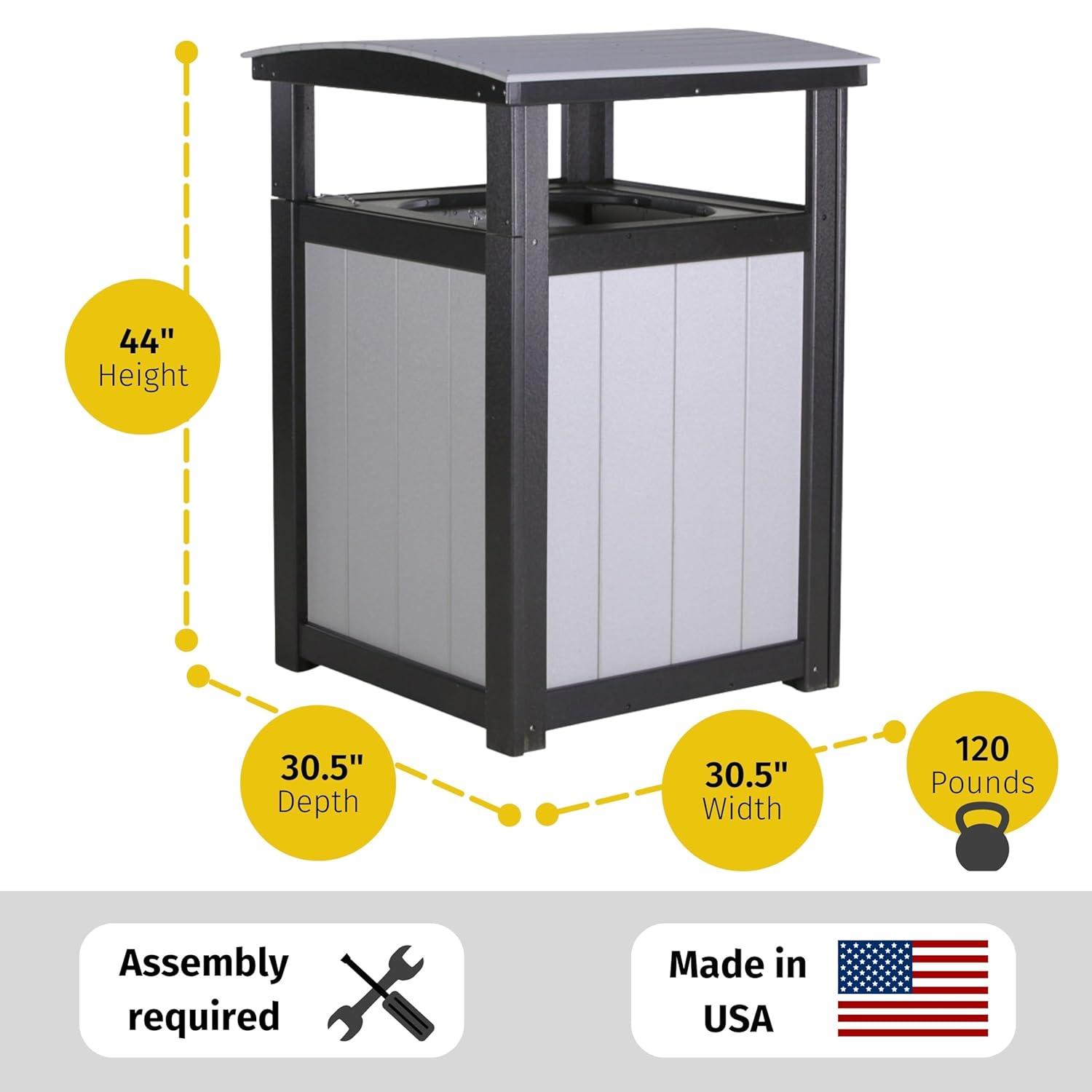 The LuxCraft Poly Outdoor Trash Can is a reliable large trash receptacle for any indoor or outdoor setting. Made from eco-friendly, weather-resistant HDPE poly lumber, this industrial trash can is perfect for areas like public parks, sports stadiums, restaurants, pools, or your backyard. Its sleek design is available in a variety of vibrant colors and two-tone combinations, adding style while providing a functional outside garbage bin. Or choose simplicity with a classic black outdoor garbage can. The 32-gallon capacity of this large trash can outdoor makes it ideal for high-traffic areas like commercial garbage zones, deck trash can spaces, or as a pool garbage can. It offers a sturdy solution for keeping large spaces clean and organized. This outdoor garbage can with lid cover helps contain waste securely while reducing odor, making it a perfect addition to outdoor patio areas and event spaces. Our trash cans outdoor feature stainless steel hardware, adding to its durability and resistance to outdoor weather conditions. This large outdoor garbage can is Amish-made in America, reflecting a commitment to quality craftsmanship. The simple assembly process means you can have this industrial trash can set up in no time, ready to handle the waste management needs of any event or commercial setting. Assembly instructions are included for a hassle-free setup. This trash can commercial also makes a great commercial garbage can and can be used as a trash can for outside in both public and private spaces. Whether you're outfitting an event space, business setting or simply need a trash can for outside in your backyard, our trash can for outdoors are a perfect addition to any space. It pairs well with 32-gallon liners (sold separately) for easy cleanup and maintenance, offering a long-lasting solution for personal and commercial waste management. Do you need trash bins outdoor for your space? Shop LuxCraft large outdoor trash can with lid covering today!