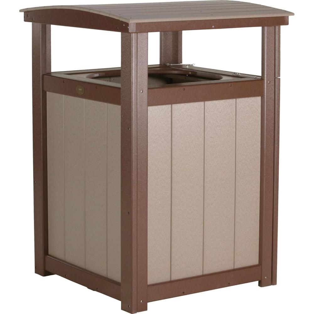 The LuxCraft Poly Outdoor Trash Can is a reliable large trash receptacle for any indoor or outdoor setting. Made from eco-friendly, weather-resistant HDPE poly lumber, this industrial trash can is perfect for areas like public parks, sports stadiums, restaurants, pools, or your backyard. Its sleek design is available in a variety of vibrant colors and two-tone combinations, adding style while providing a functional outside garbage bin. Or choose simplicity with a classic black outdoor garbage can. The 32-gallon capacity of this large trash can outdoor makes it ideal for high-traffic areas like commercial garbage zones, deck trash can spaces, or as a pool garbage can. It offers a sturdy solution for keeping large spaces clean and organized. This outdoor garbage can with lid cover helps contain waste securely while reducing odor, making it a perfect addition to outdoor patio areas and event spaces. Our trash cans outdoor feature stainless steel hardware, adding to its durability and resistance to outdoor weather conditions. This large outdoor garbage can is Amish-made in America, reflecting a commitment to quality craftsmanship. The simple assembly process means you can have this industrial trash can set up in no time, ready to handle the waste management needs of any event or commercial setting. Assembly instructions are included for a hassle-free setup. This trash can commercial also makes a great commercial garbage can and can be used as a trash can for outside in both public and private spaces. Whether you're outfitting an event space, business setting or simply need a trash can for outside in your backyard, our trash can for outdoors are a perfect addition to any space. It pairs well with 32-gallon liners (sold separately) for easy cleanup and maintenance, offering a long-lasting solution for personal and commercial waste management. Do you need trash bins outdoor for your space? Shop LuxCraft large outdoor trash can with lid covering today!