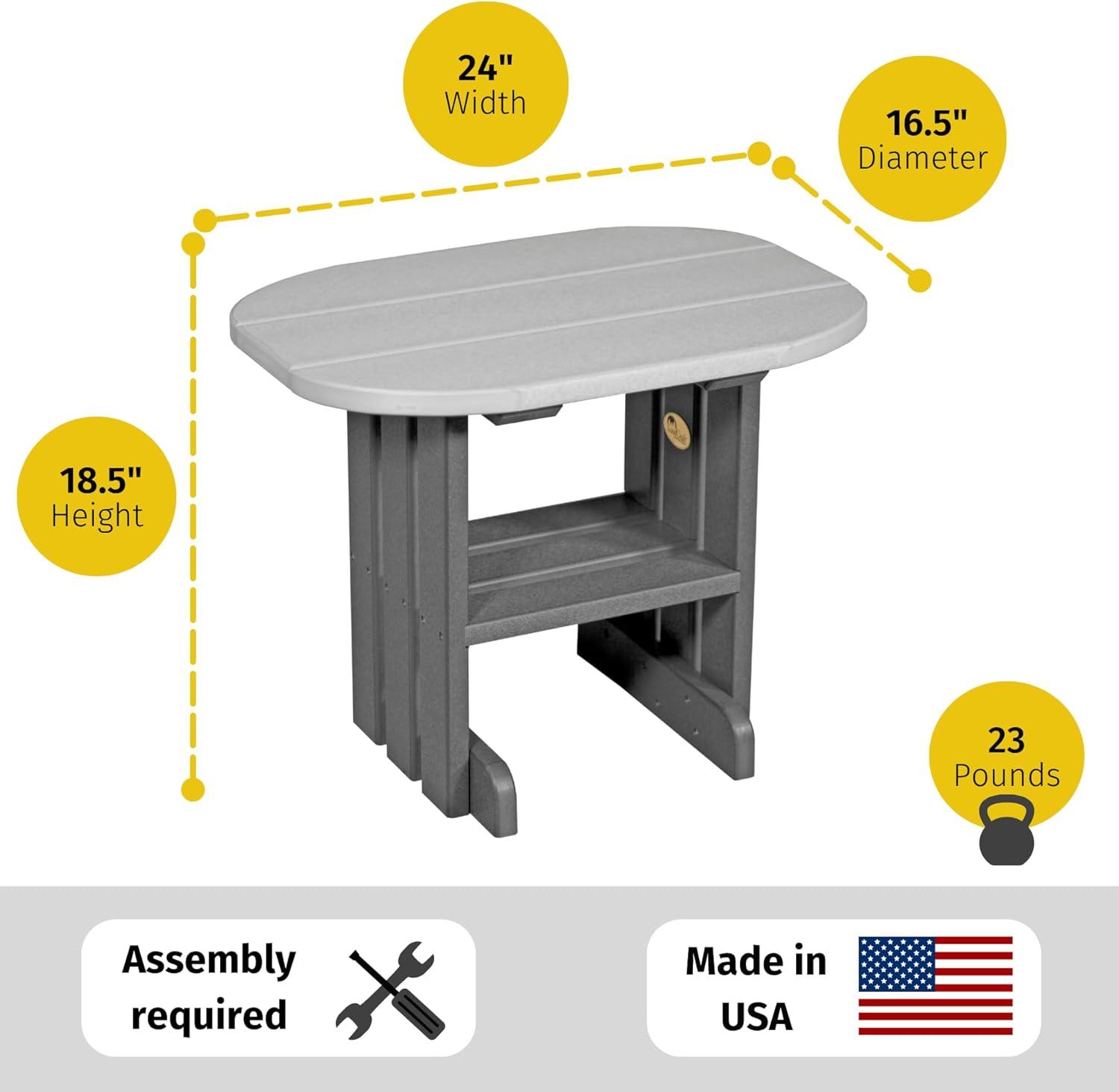 Redefine your outdoor space with the LuxCraft Poly Side Table, proudly made in the USA. Whether you're looking for small patio tables for outside or an outdoor drink table, this poly piece is your perfect companion. Crafted from eco-friendly poly lumber, made from recycled plastics, this outdoor patio side table stands as a testament to sustainability. By choosing LuxCraft, you're not only investing in durable outdoor furniture but also making a conscious choice for the environment. This HDPE material guarantees a polywood table that will not fade, splinter, or warp, enduring the harshest of weather conditions while retaining its color season after season with minimal maintenance. The LuxCraft Adirondack Table is more than just an outdoor accent table; it's an indispensable addition to your outdoor space. The patio end tables generous top is big enough for a frosty beverage, a plate of appetizers, or your favorite book, ensuring everything you need for leisure is within arm's reach. Below the surface, this outside side table boasts a convenient three-slat lower shelf provides ample space for magazines, sunblock, or a small decorative plant, ensuring your outdoor space remains tidy and functional. Personalize your outdoor sanctuary with our stunning array of poly colors. Whether you prefer a sleek, solid hue or a striking two-tone combination, finding the perfect match to complement your existing outdoor decor is a delightful journey. This small patio side table is the perfect addition to any patio, porch, or deck, serving as a front porch table, plant pedestal, or drink table. Choose the LuxCraft Outdoor Small Side Table for your outdoor furniture needs and enjoy the perfect blend of style, eco-friendliness, and durability. This plastic side table is not just a piece of furniture; it’s a low-maintenance, high-value essential furniture piece that enhances the way you live outdoors. All LuxCraft outdoor end tables for patio are built to last for years to come.