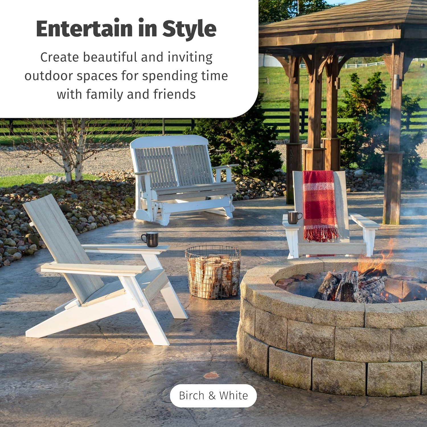 LuxCraft Poly Urban Adirondack Chair, Plastic Chairs for Outside, Camping Chair, Deck Chairs – Amish Made in USA (Coastal Gray)(Birch on White)